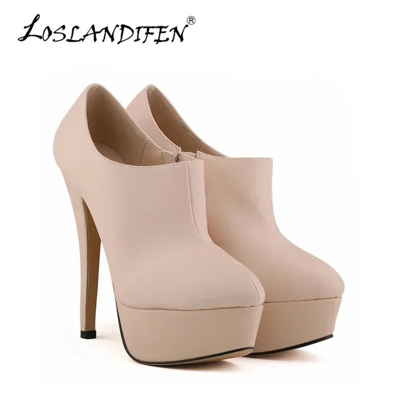 Women Boots Sexy Stilettos Fashion Autumn Winter 14cm Round Toes High Heels Ladies Casual Platform Pumps Leather Party ShoesSPECIFICATIONS