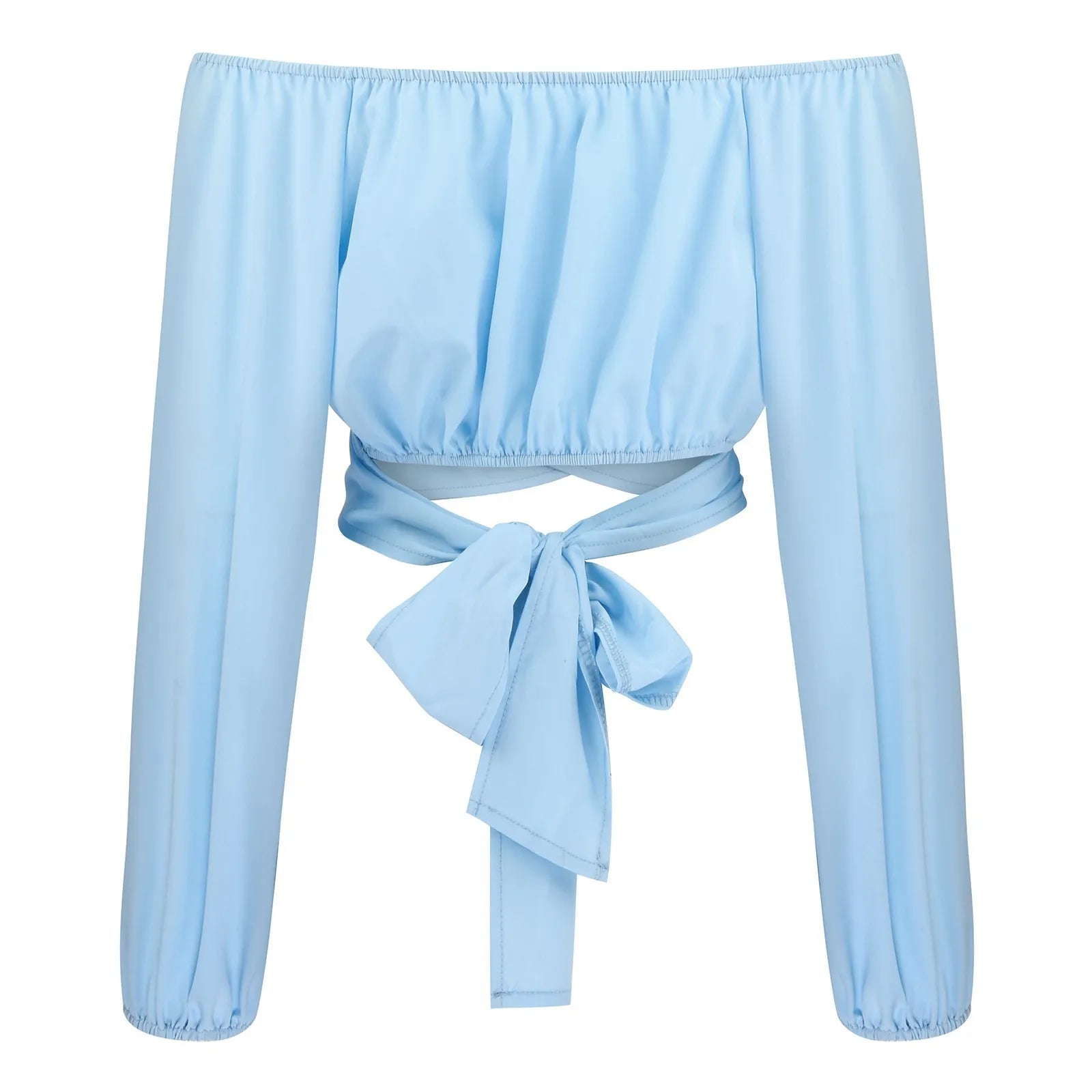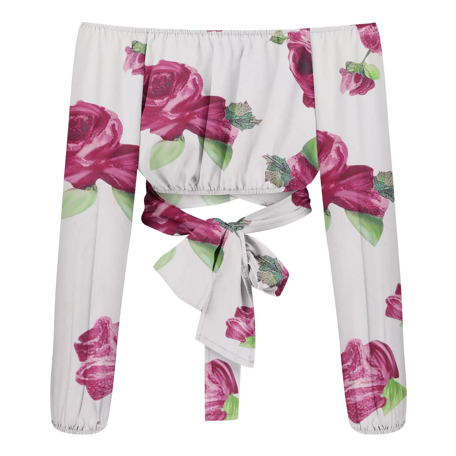 Women Sexy Off Shoulder Blouse Chic and Elegant Printing Lantern Long Sleeve Lace Up Bow Cropped Tops Casual Slim Shirts 2024SPECIFICATIONS