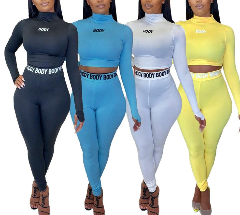 Sexy Women Sport Two Piece Set Casual Letter print Long Sleeve Crop Tops Tee Bikers PantsSPECIFICATIONS