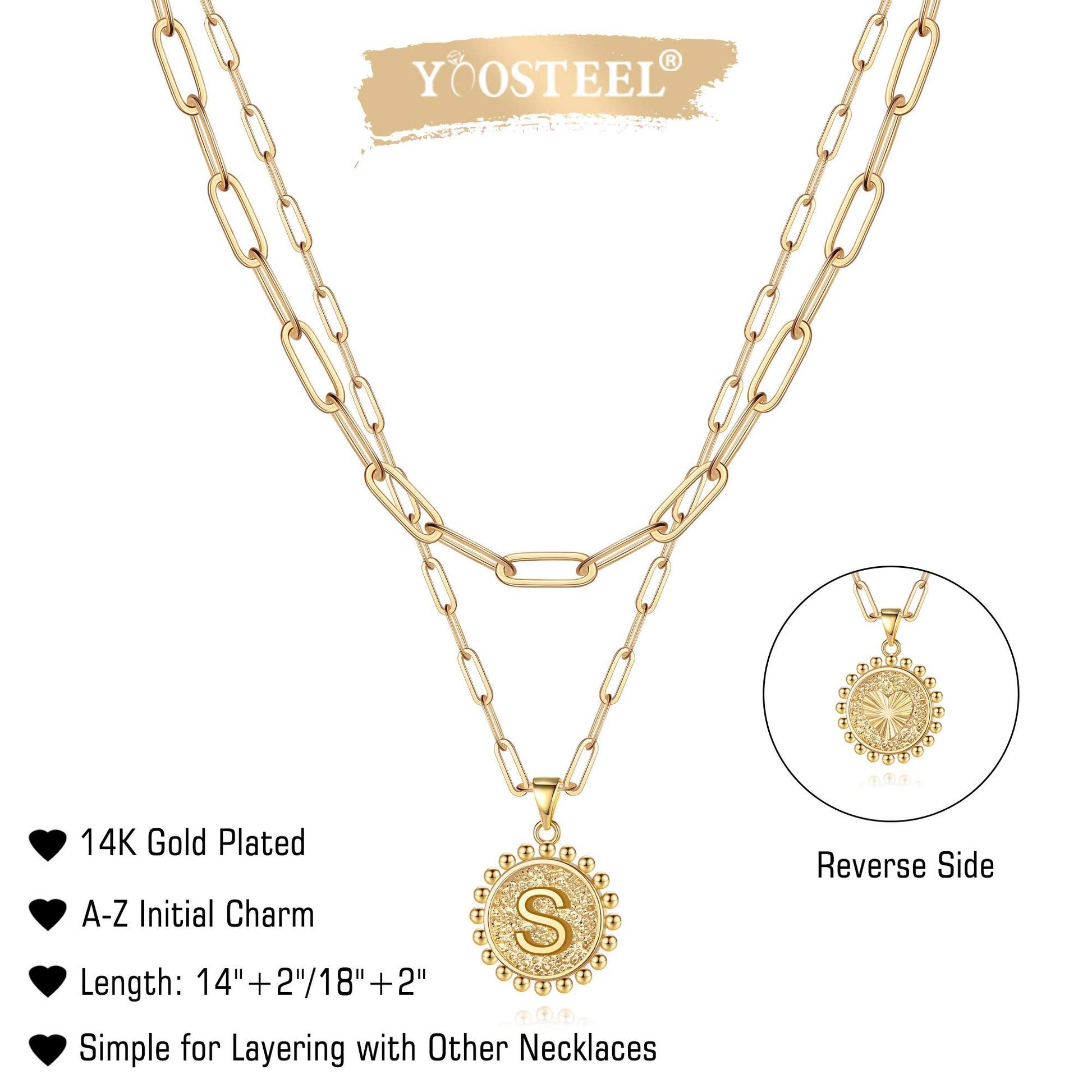 Yoosteel Gold Necklaces for Women, 14K Gold Plated Dainty Layering Paperclip Link Chain Necklace Personalized Coin Pendat S Gold Layered Necklaces for Women Gold Jewelry GiftsBrand: Yoosteel