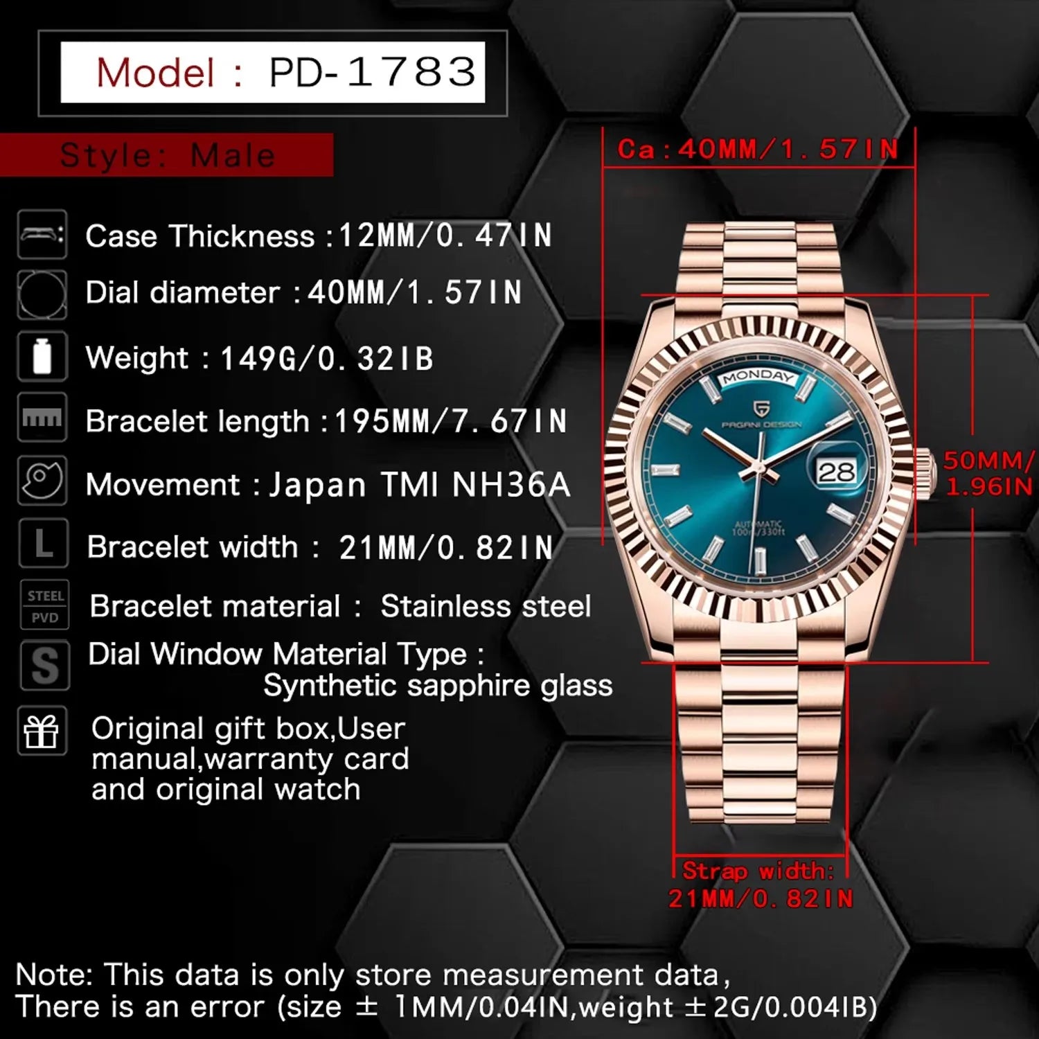 2025 New PAGANI DESIGN Luxury Men Mechanical Watches Rose Gold Automatic Watch For Men AR Sapphire Mirror Sports Clock Man Gifts