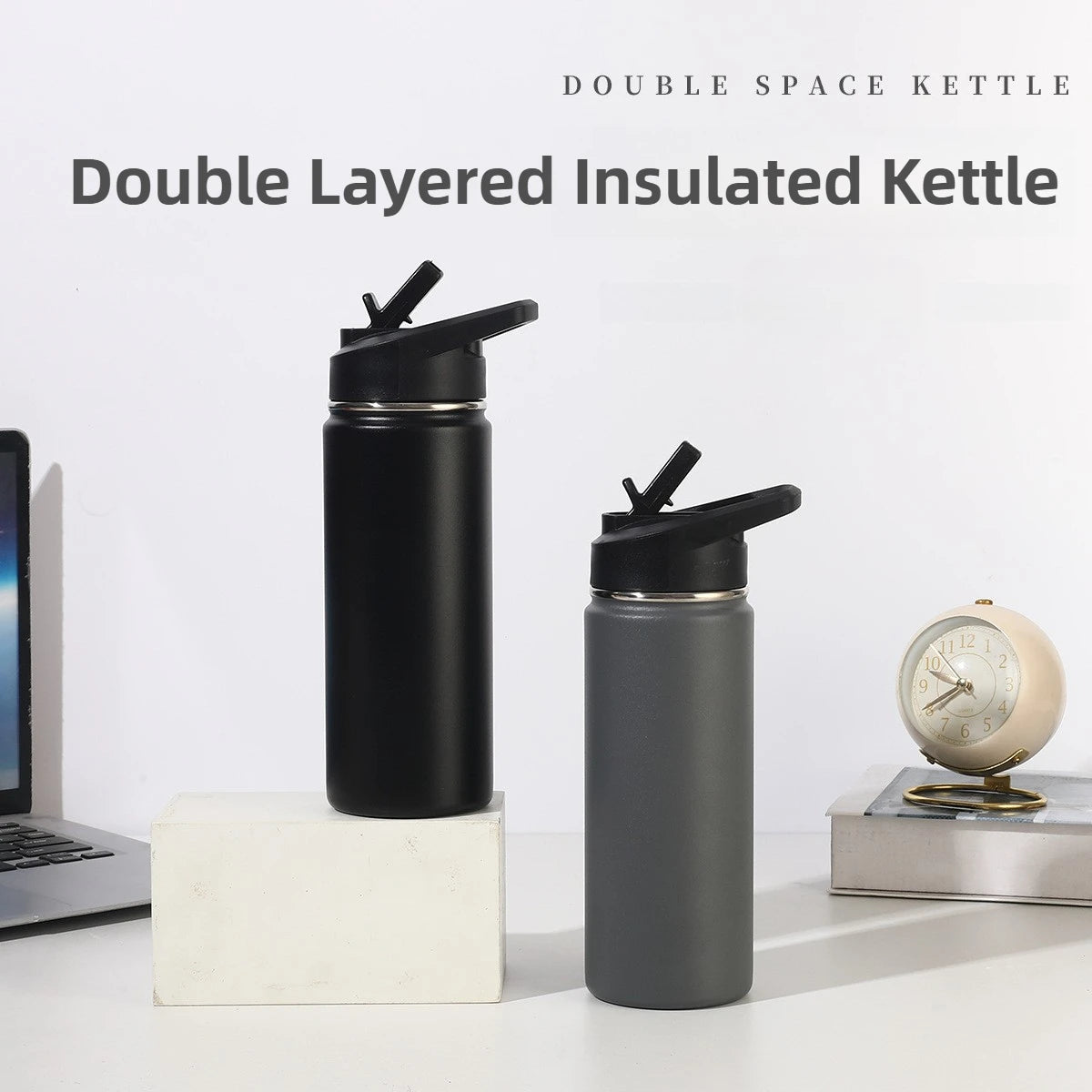 22oz Double Layered 304 Stainless Steel Vacuum Insulated Thermos Sports Water Cup Portable Outdoor Cycling Kettle