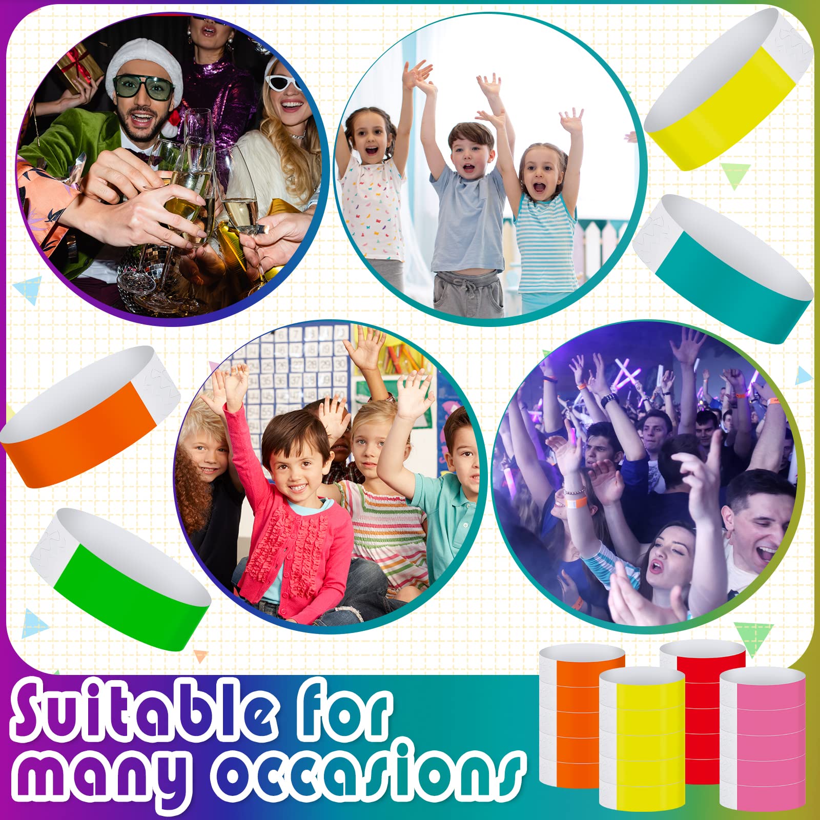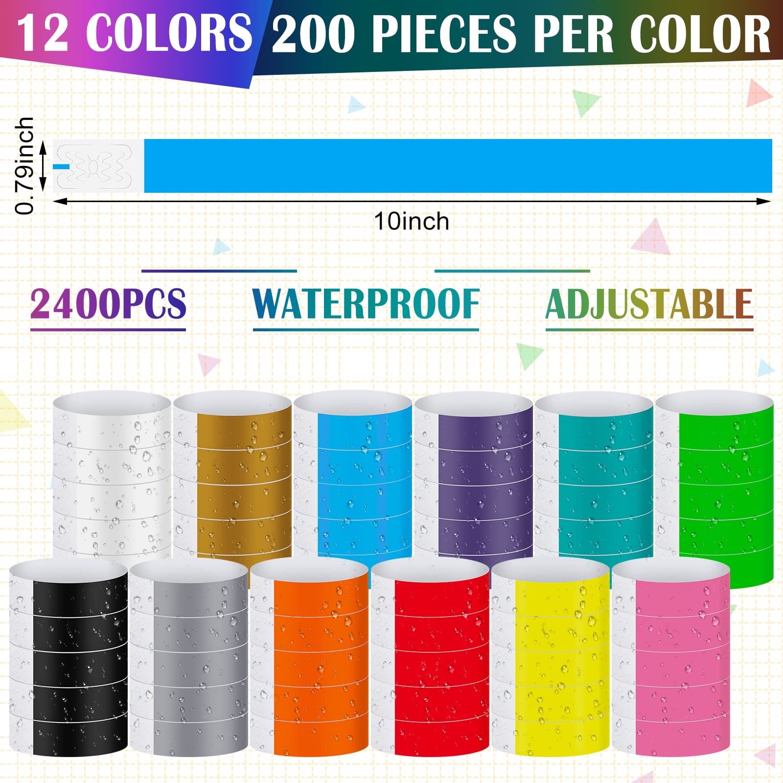 - Sufficient in Quantity: you will receive 2400 pieces wrist bands for events, the quantity is sufficient for your party usage and replacement needs; You can also share them with your friends or classmates