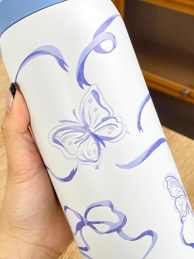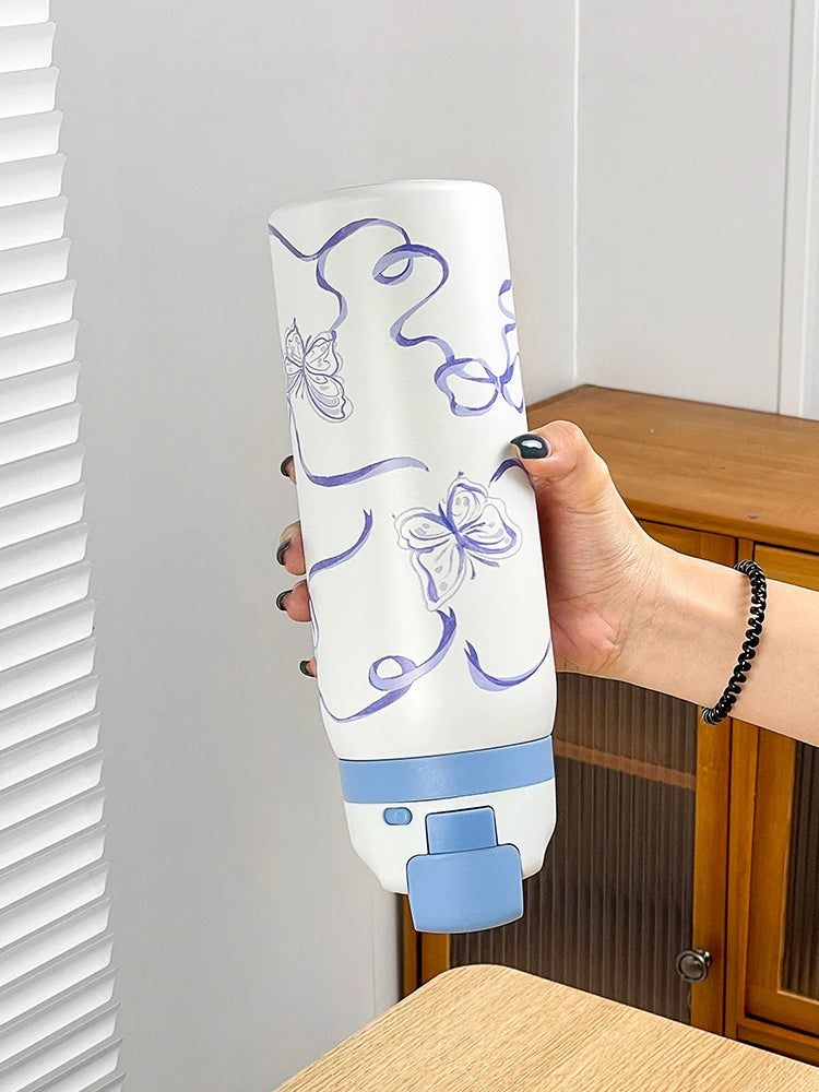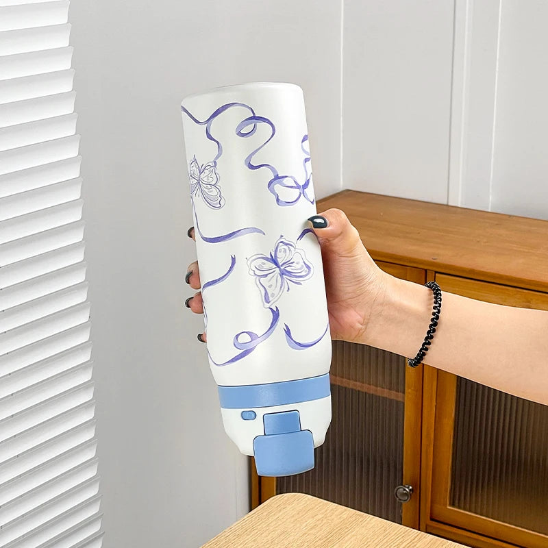 Best Selling 34oz Stylish Stainless Steel Water Bottle - Trendy Floral Two-Tone Design, 24Hr Hot/Cold Insulated, Leakproof Sport Lid & Handle