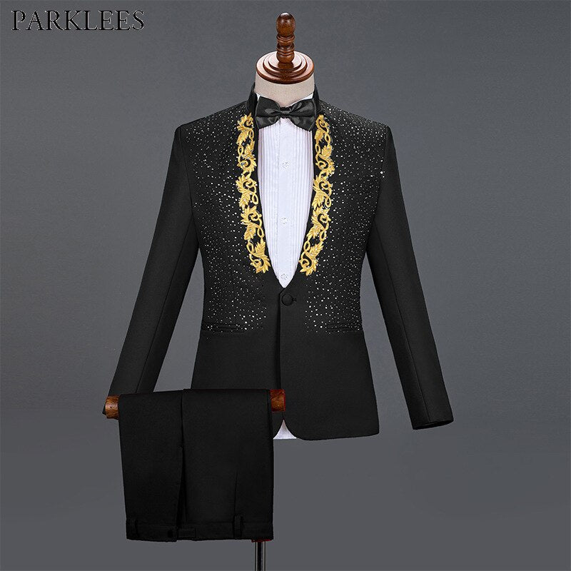 3x and 4x Diamond Royal Blue Men Suit Set Gold Embroidered Wedding Mens Slim Fit Tuxedo Mens Suits with Pants Prom Show Stage CostumeSPECIFICATIONS