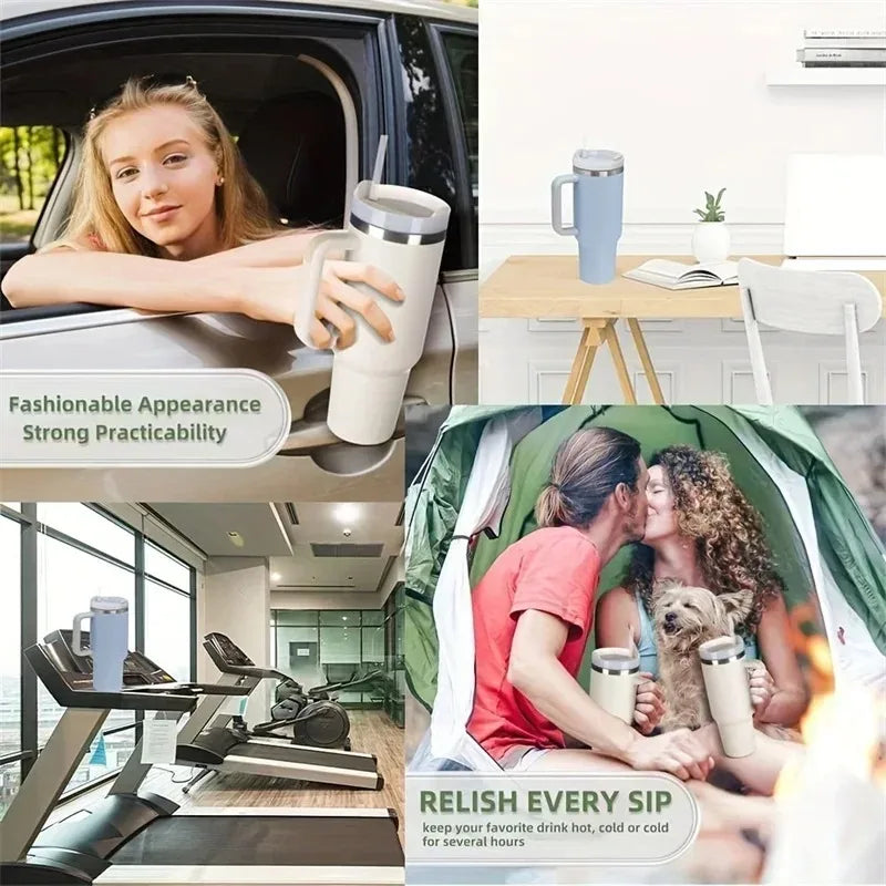 Best Selling 40oz Stainless Steel Car Cup Large Capacity Water Cup with Handle and Straw Double-walled Insulated Travel Mug Holiday Gifts
