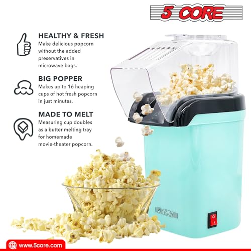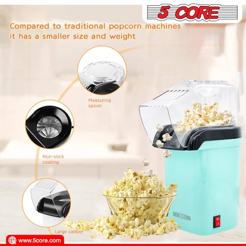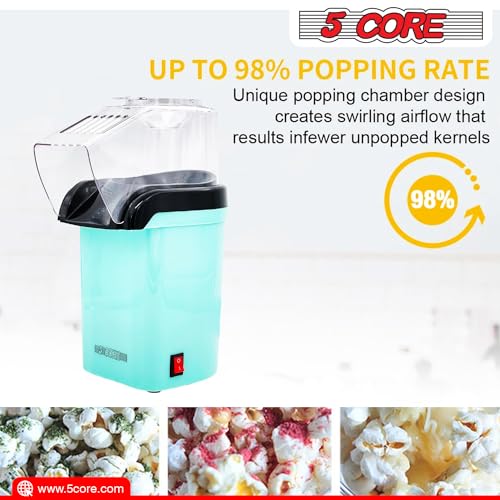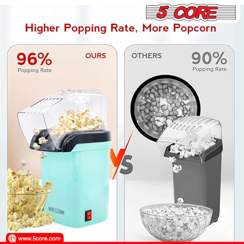 5 Core Hot Air Popcorn Popper Machine 1200W Electric Popcorn Kernel Corn Maker Bpa Free, 95% Popping Rate, 2 Minutes Fast, No Oil-Healthy Snack for Kids Adults, Home, Party, Gift POP GBrand: 5 CORE