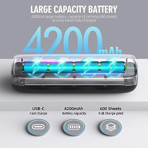 - Wireless Printer-High Quality Printing and Long Standby: Wireless printer adopts high-definition printing technology and super-large battery design to provide clearer printing for your needs. At the same time, it is equipped with a 4200mAh battery, which can stand by once charged. The printer can print 600 US letter papers at a time, which meets the needs of most workers. need. At the same time, you can also set the automatic shutdown time on my device to save power for you as much as possible.