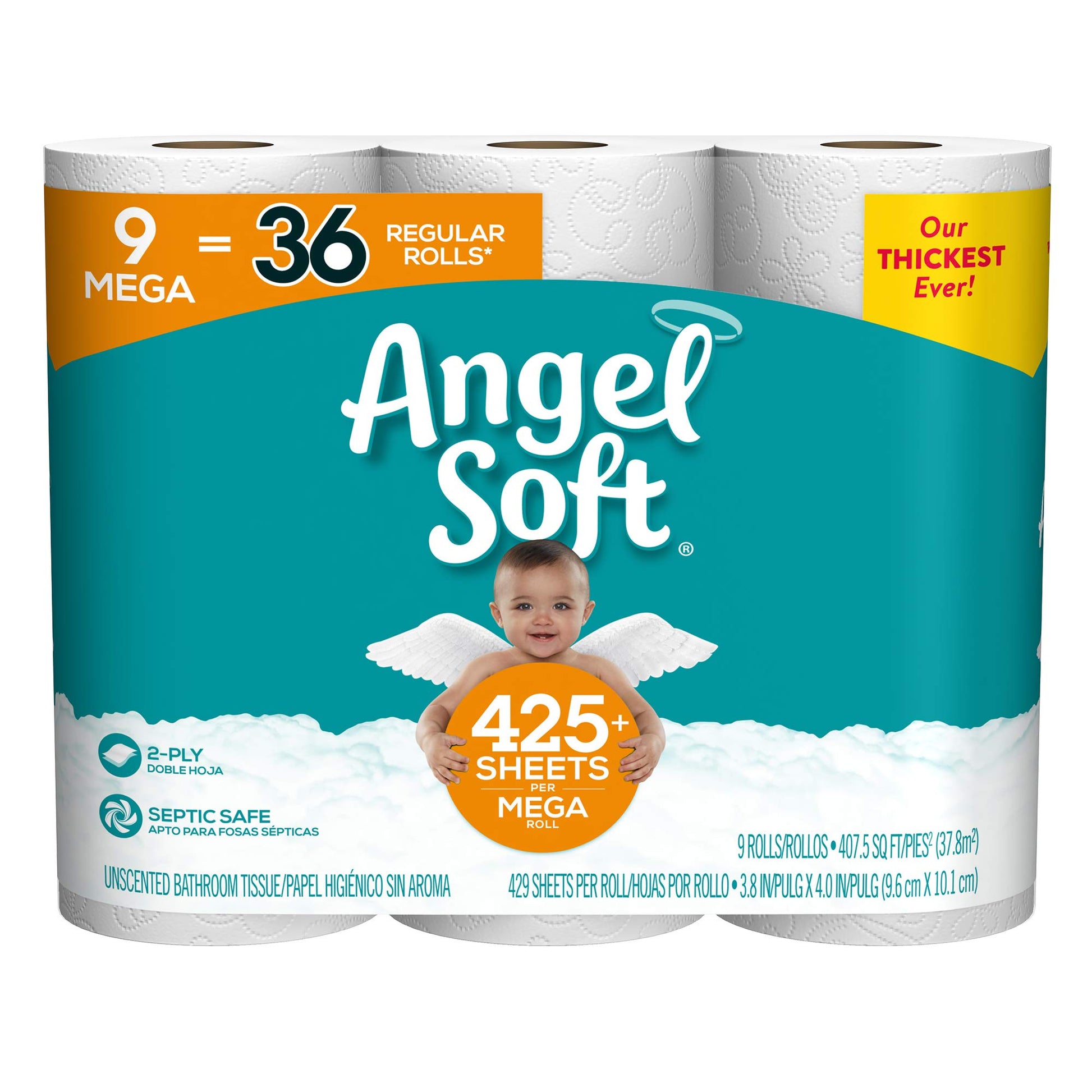 Best Selling Angel Soft 9 Mega Rolls (Case of 4-9 Mega Roll Packs) 429 Sheets per Roll