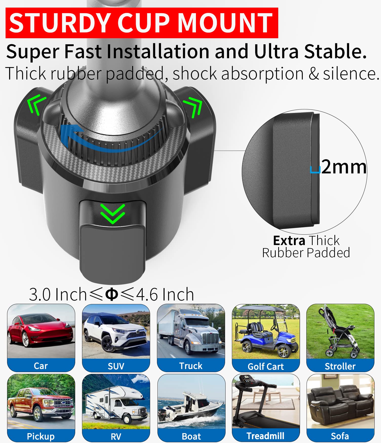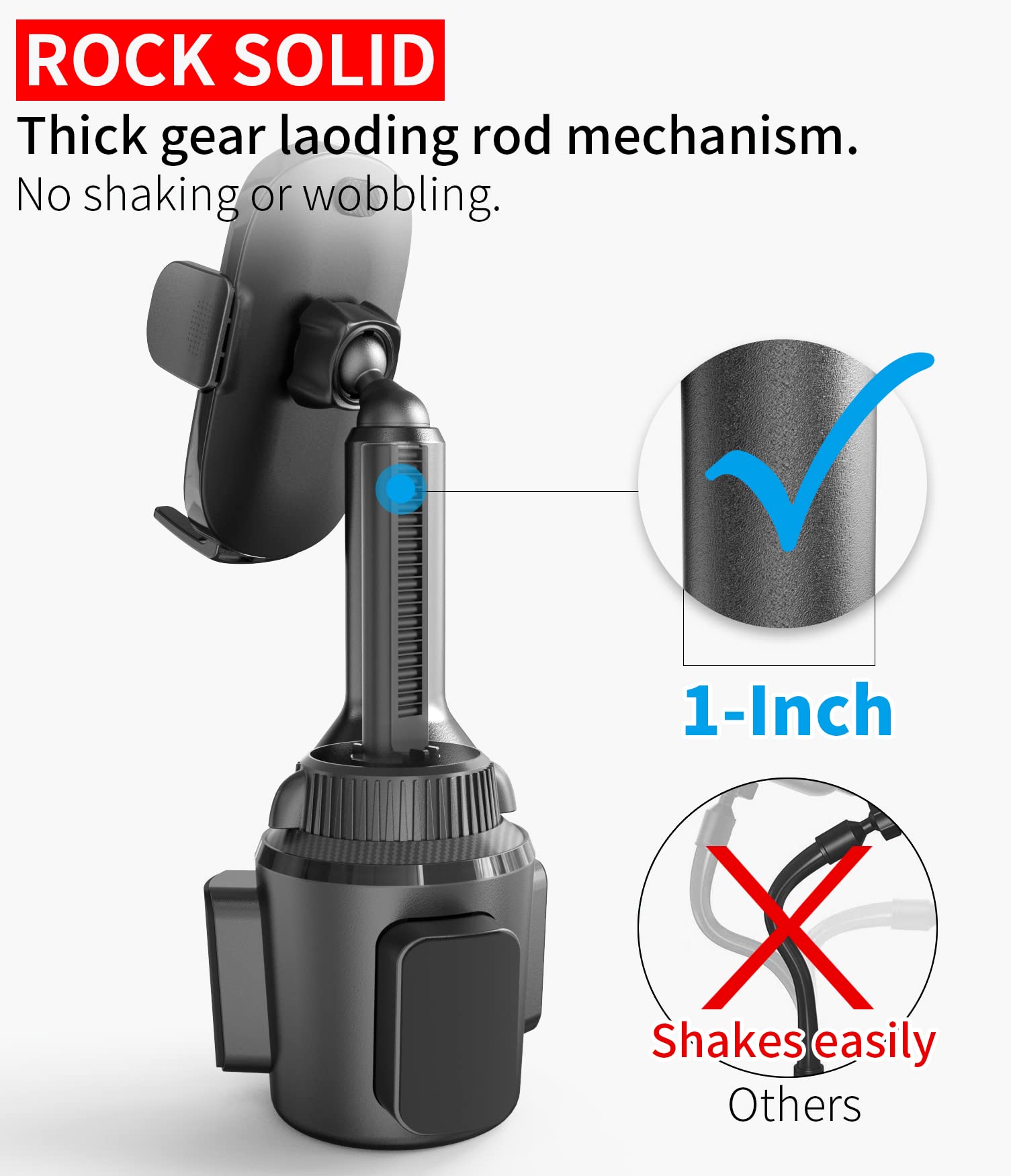 - Quick Extension Sturdy Arm: No more screws adjusting, just pull and push to adjust the height. Easy one-hand operation! The car cup holder phone mount can reach a maximum height of 12.5" for easy operating and access to your device without blocking anything on the console.