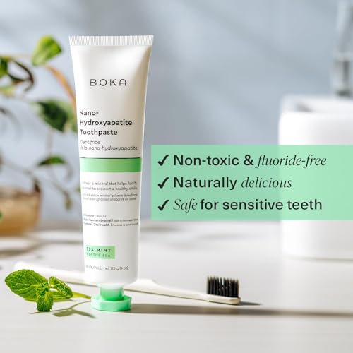 Boka Fluoride Free Toothpaste - Nano Hydroxyapatite, Remineralizing, Sensitive Teeth, Whitening - Dentist Recommended for Adult & Kids Oral Care - Ela Mint Natural Flavor, 4oz 1 Pk - US Manufactured