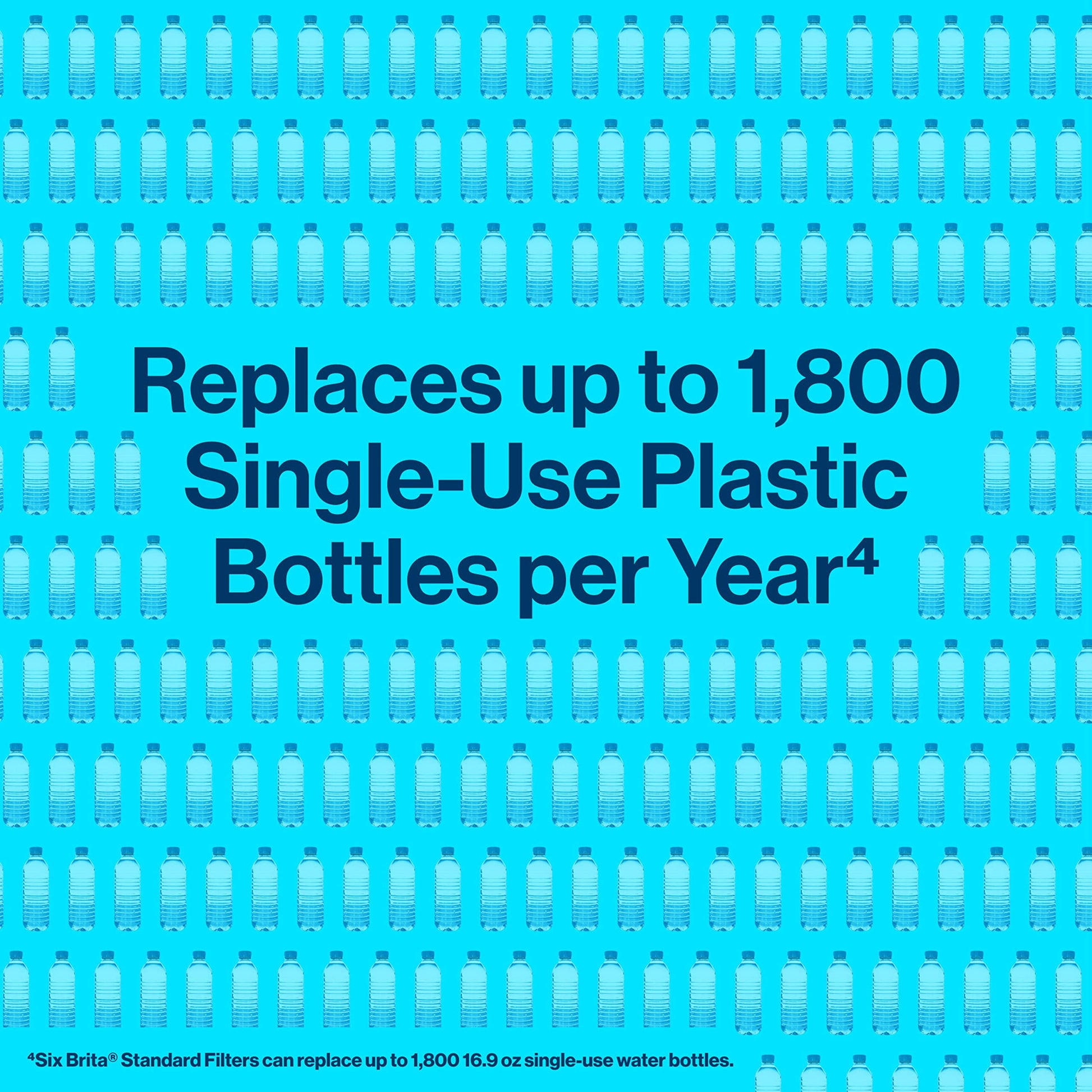 - Water without the single-use bottle waste; by using to Brita, you can replace up to 1,800 16.9 fl oz single-use plastic water bottles a year