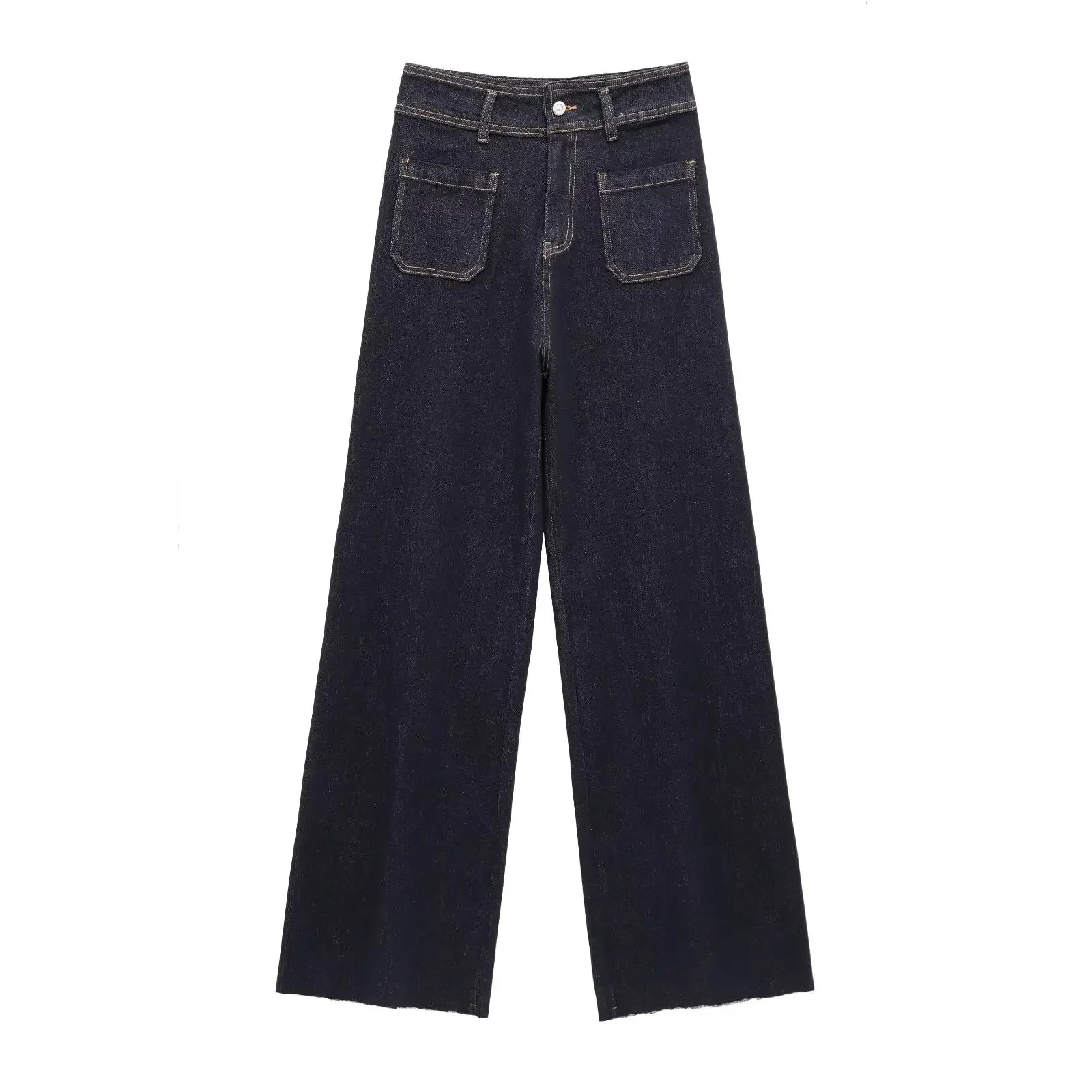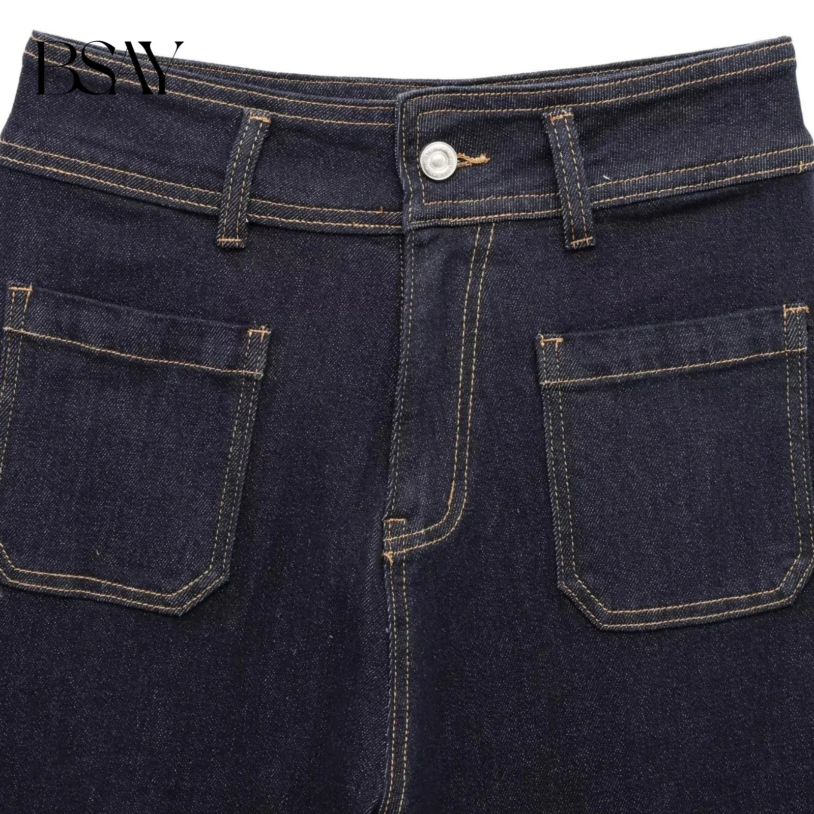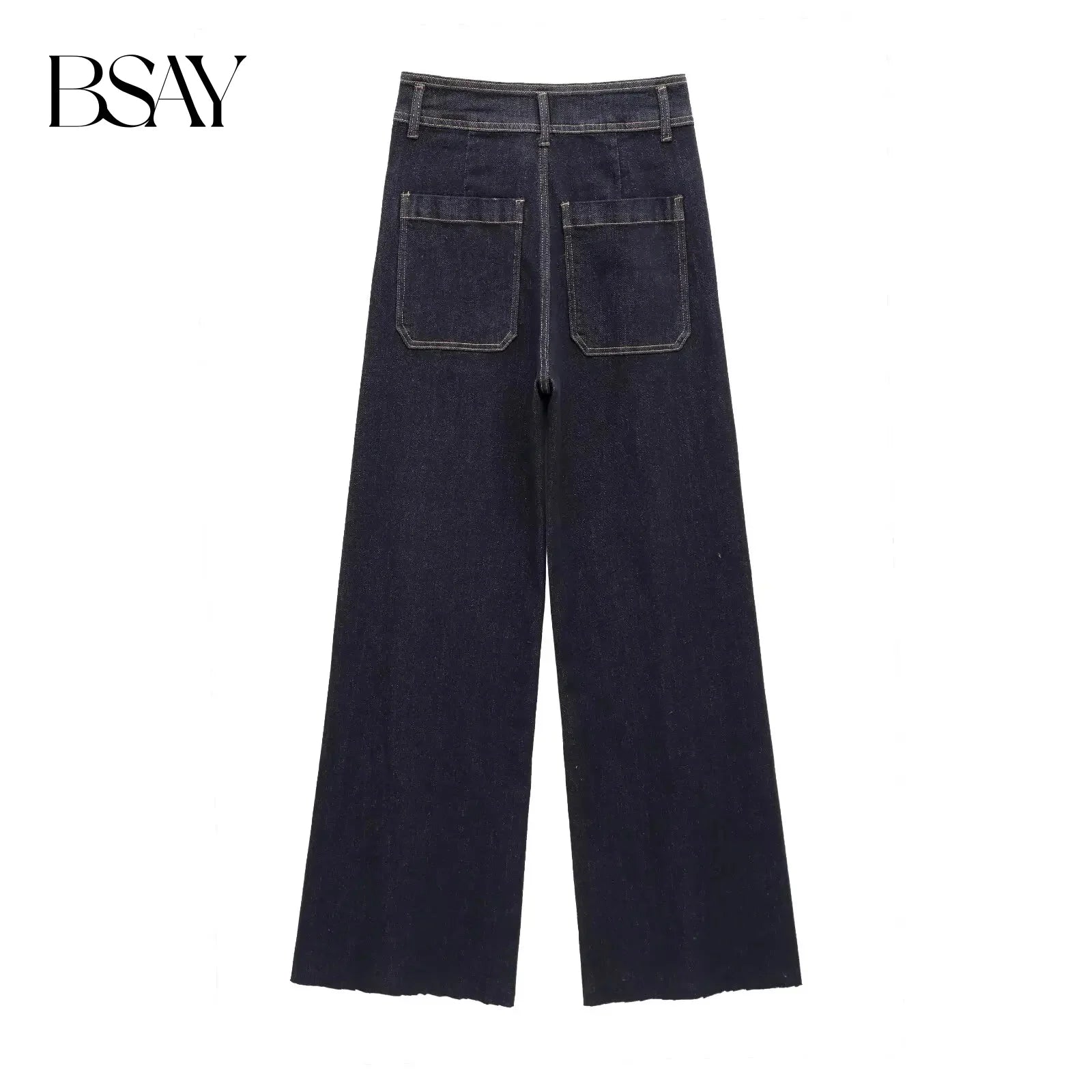 Best Selling BSAY Jeans for Women Fashion Autumn Winter New Solid Color Pocket Loose Retro High Waist Wide Leg Pants Chic Female Trousers
