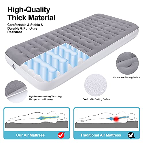 - High Quality Material & Easy to Maintain: CAMULAND inflatable air mattress for camping is coated with a skin-friendly&waterproof flock and an extra thick&puncture-resistant leather on the underside. You can enjoy the comfort for a great night's sleep. It is also easy to clean, simply use soapy water or a cloth to clean the surface of the air bed.