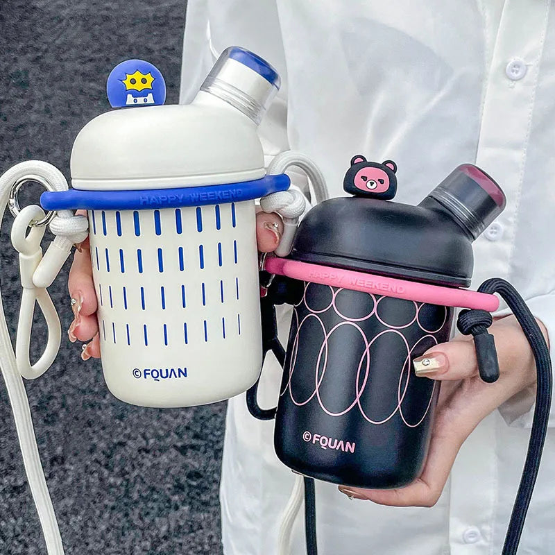 Cartoon Cute Stainless Steel Insulation Water Bottle Outdoor Double Drink Thermos Cup Portable Children Vacuum Straw Thermal Cup
