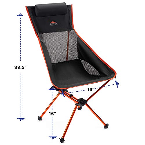 Cascade Mountain Tech Outdoor Lightweight Portable High Back Camp Chair with Headrest