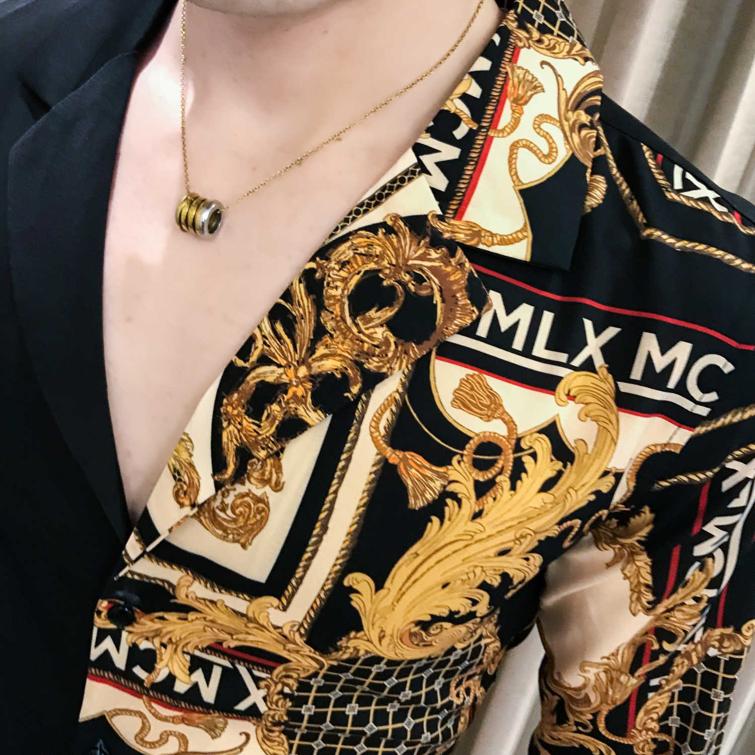 Casual Shirt Men Slim Fit Print Party Club Shirt Luxury Black Gold Shirt 201 Autumn Baroque Men Shirt Long Sleeve Patchwork