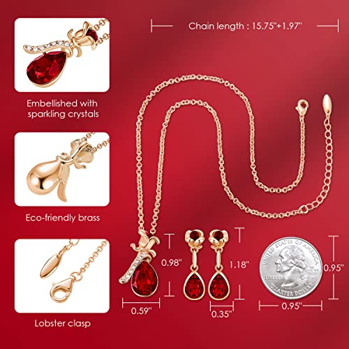 - ♥Rose Jewelry Set Specification♥ Pendant Size: 0.59""(L) x 0.98""(H) | Chain Length: 15.75""+ 1.97"" | Earrings Size:0.35""(L) x 1.18""(H) | Plating: rose gold | Clasp: lobster clasp | Stones: pear shape crystal | Color: pink/red.