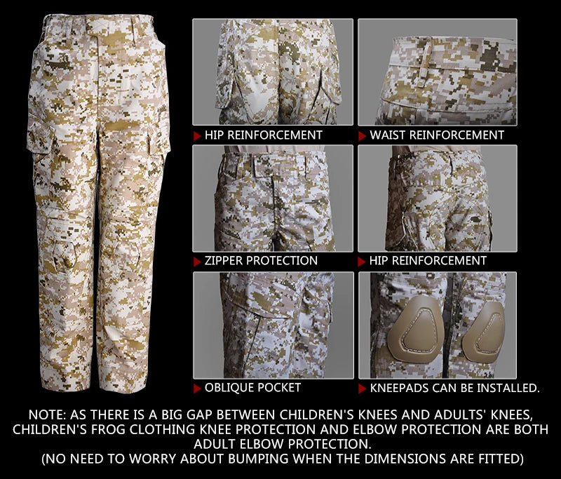 Children Tactical Suits Camouflage Suit Special Forces Combat Uniform Kids Outdoor Sport Training Sets with Knee Pads Camping