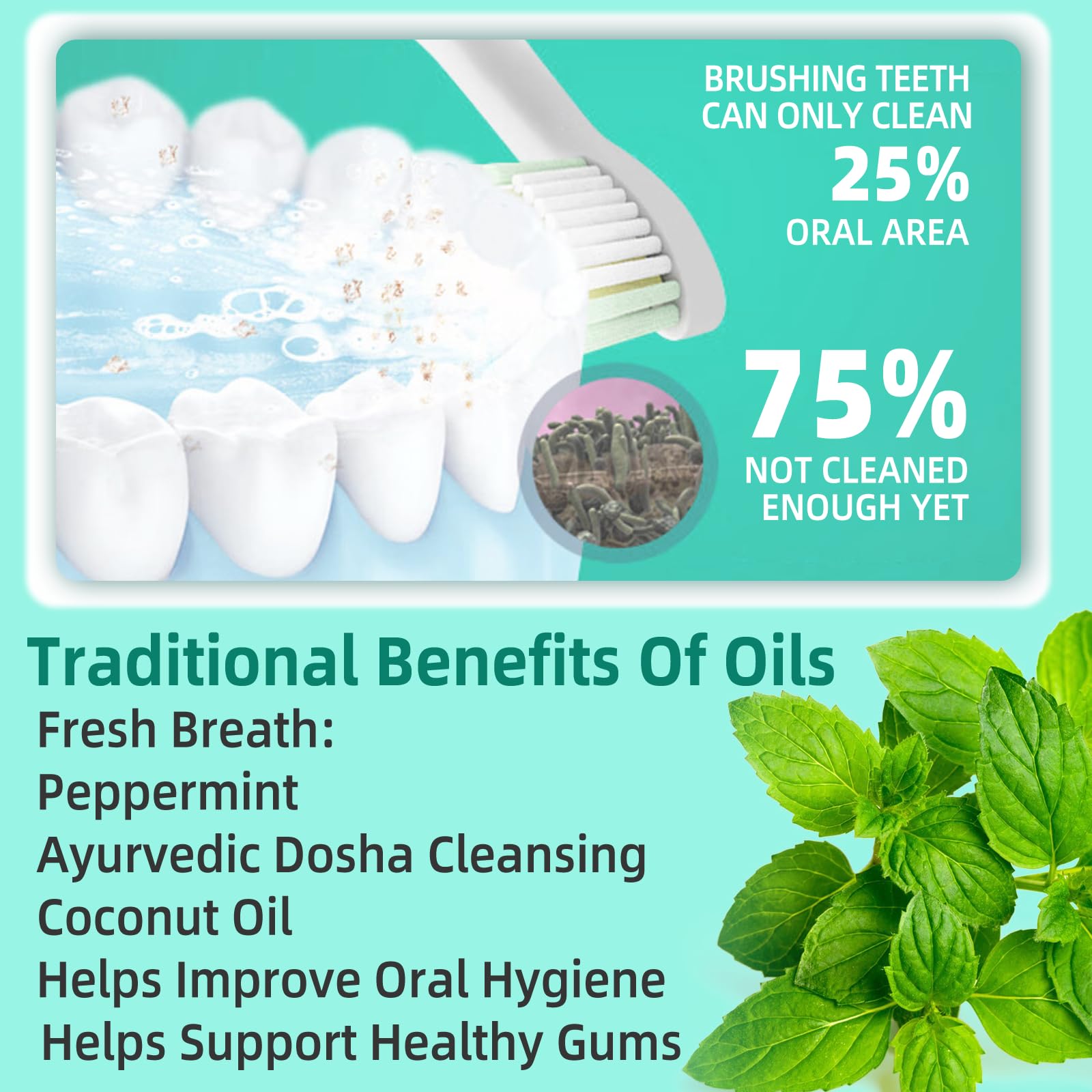 Coconut Mint Pulling Oil Mouthwash, Natural Teeth Whitening, Ayurvedic Daily Swish for Oral Health, Tongue Scraper Included, Alcohol & Fluoride Free, Healthy Gums, Good Breath, 237ml