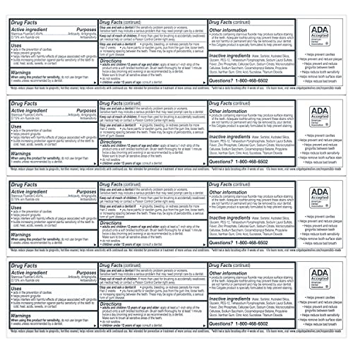 Details: Get 10 benefits and no trade-offs with Colgate Total Clean Mint Toothpaste. This multi-benefit Colgate Total toothpaste provides 42%* more sensitivity relief than a regular fluoride toothpaste while removing and preventing surface stains. This mint toothpaste leaves your mouth feeling fresh after every brush. Remove surface stains by brushing twice daily with this tooth whitening toothpaste. Plus, this sugar-free and gluten-free whitening toothpaste helps remove stains for whiter teeth. Easily stock multiple bathrooms with this convenient double toothpaste pack. For good oral hygiene, brush your teeth twice a day for two minutes. You can smile confidently when you use Colgate Total Clean Mint toothpaste. Leave your mouth feeling clean and fresh and remove surface stains with Colgate Total Toothpaste. *versus a regular fluoride toothpaste after 8 weeks of use.