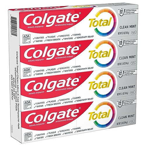 Colgate Total Clean Mint Toothpaste, 10 Benefits, No Trade-Offs, Freshens Breath, Whitens Teeth and Provides Sensitivity Relief, Clean Mint Flavor, 4 Pack, 5.1 Oz TubesBrand: Colgate