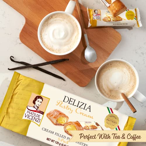 Delizia Pastry Cream by Pasticceria Matilde Vicenzi | Cream Filled Puff Pastry Patisserie Rolls | All-Natural, Kosher Dairy | Made in Italy | 4.41oz (125g) Box, 4-PackBrand: Pasticceria Matilde Vicenzi