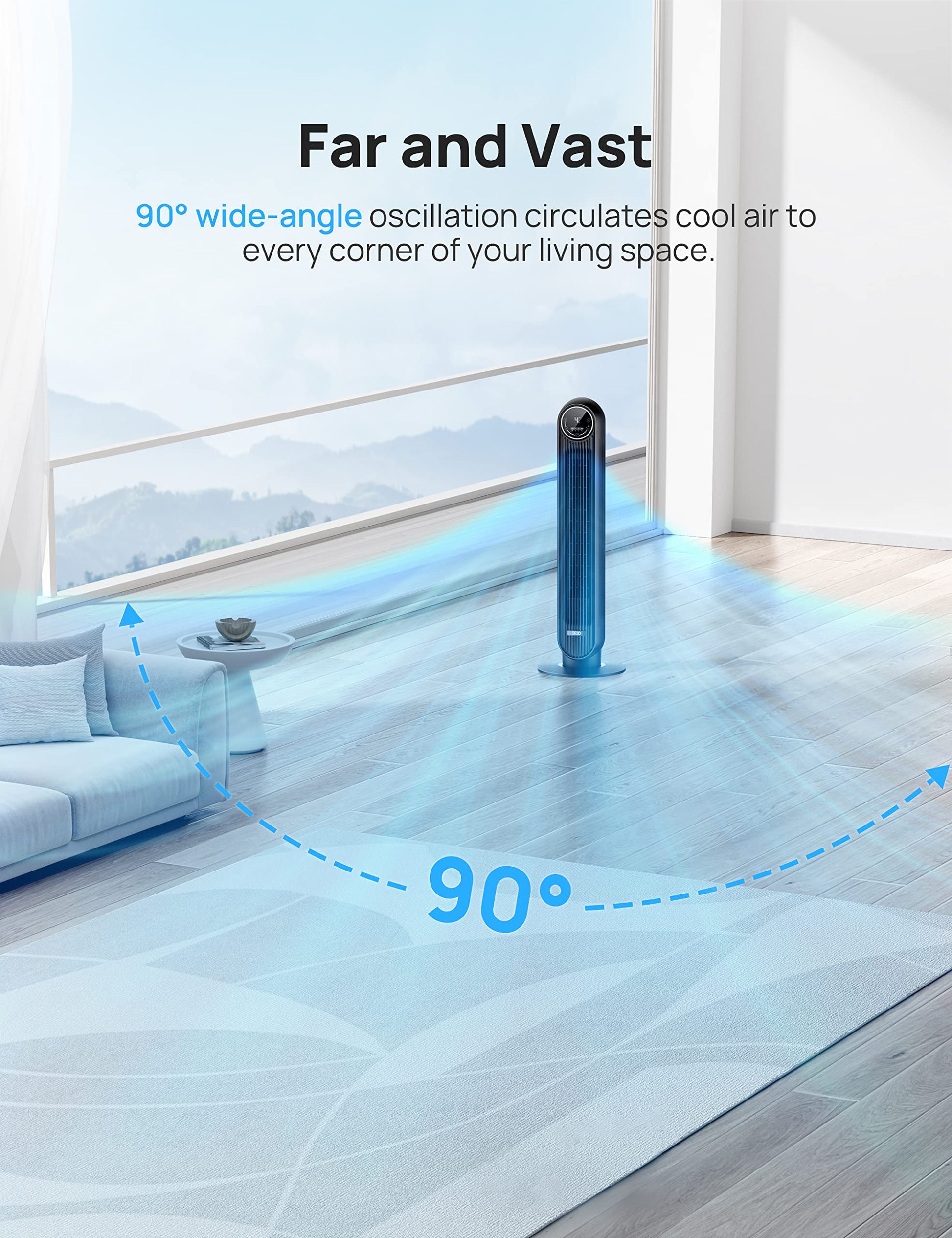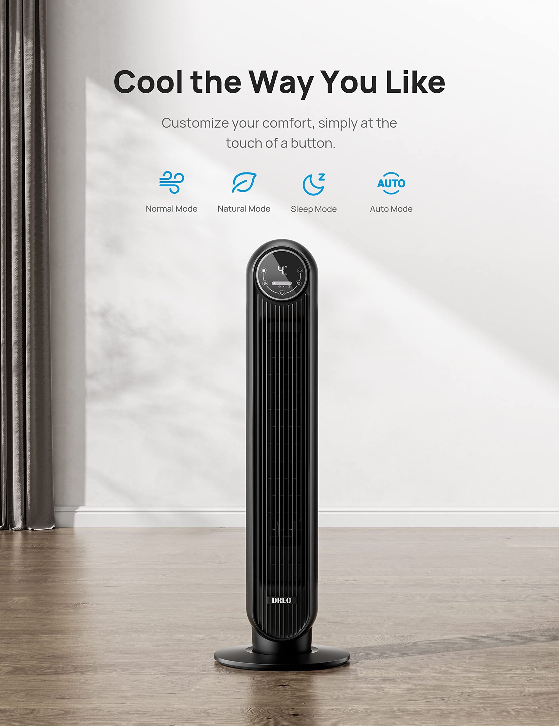 - Powerful Meets Portable: Dreo's all-in-one airflow system combines with a supercharged electric motor, delivering high-speed, brisk cool. This 36-inch compact tower fan enlivens every inch of air in your living space fast at up to 24ft/s.