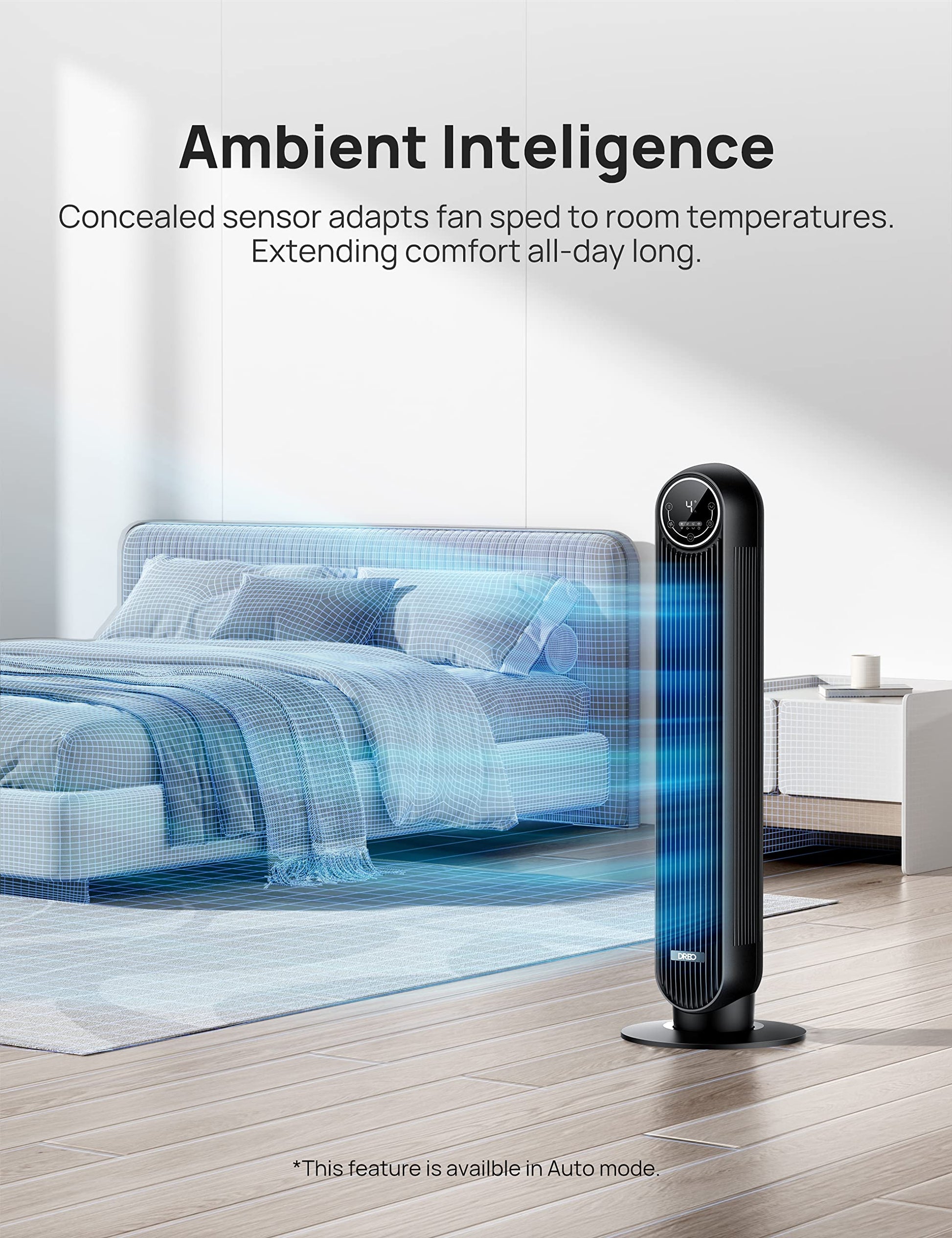 - Customizable Comfort: Featured with 4 modes (Normal/Natural/Sleep/Auto) and 4 speeds from soothing-soft to storm-strong, you can easily customize your comfort at the touch of a button, on the panel or the remote.