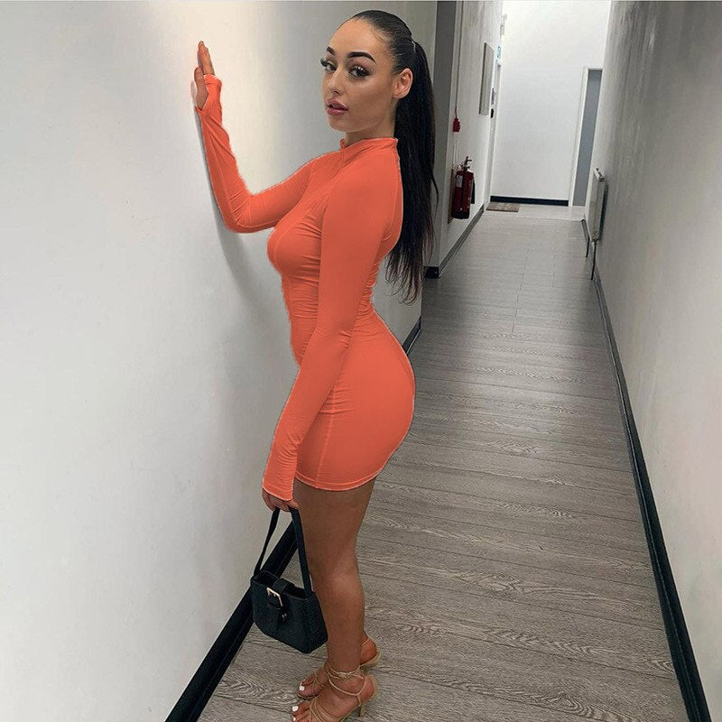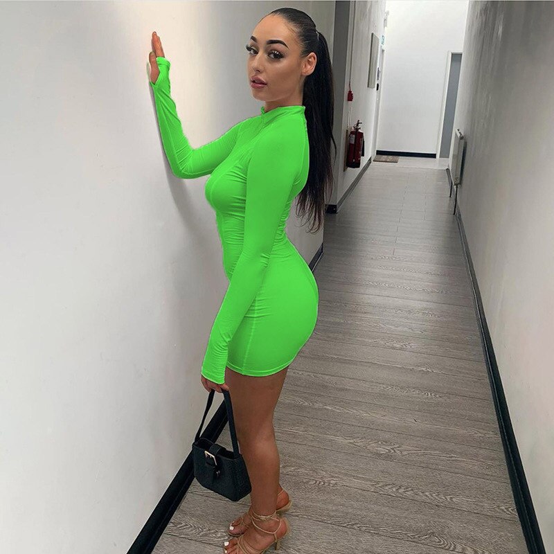 Elegant Solid Bodycon Women Dress Sexy Zipper Long Sleeve Mini Women Dress Striped White Tight Club Party Dress 2020 ClothingSPECIFICATIONS