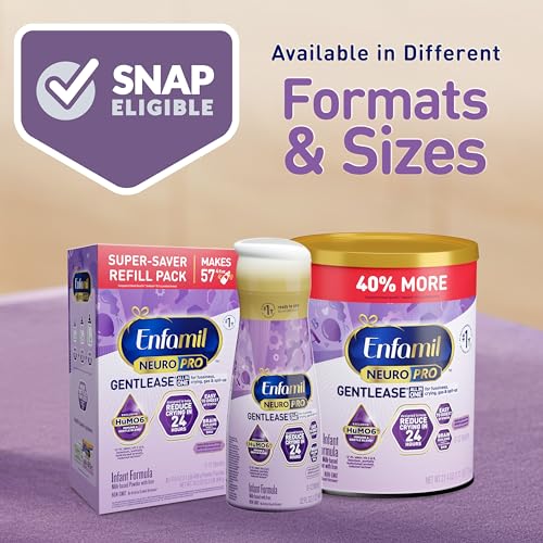 Details: Introducing Enfamil NeuroPro Gentlease. Our trusted Gentlease formula, clinically proven to reduce fussiness, gas and crying within 24 hours, now has MFGM that nourishes the brain first. Emerging evidence from a recent clinical study showed MFGM in formula supports cognitive development similar to breast milk. NeuroPro is the only formula that has a fat-protein blend of MFGM & DHA, previously only found in breast milk. So you can get brain-building nutrition inspired by breast milk from the formula brand that's No.1 recommended by Pediatricians. It offers complete nutrition for babies through 12 months, easy-to-digest proteins and vitamins and minerals for immune health. Each packet makes an 4 fl oz bottle, perfect for feedings on the go. As measured by Bayley-III cognitive score at 12 months in a different formula with MFGM added as an ingredient. Enfamil is the No.1 pediatrician recommended brand of Infant Formula - QuintilesIMS, using the ProVoice Survey fielded from October 1, 2016 to September 30, 2017. †In amounts supported by clinical research. Not made with genetically modified ingredients, but trace amounts of genetically engineered materials may be present in the product from manufacturing environments and process sources.