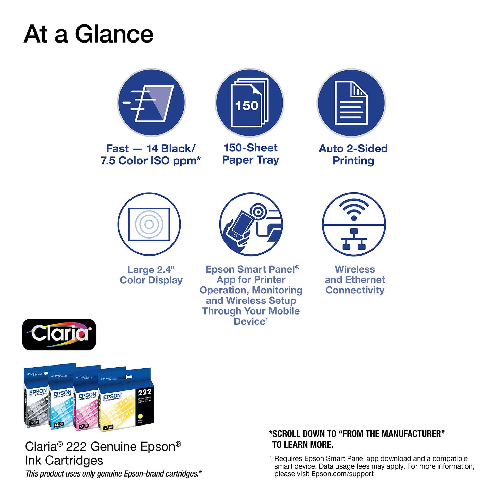 - Stress-Free Setup and Operation — Large 2.4" color display for effortless navigation, plus easy installation and operation through your smartphone or tablet using the Epson Smart Panel app¹