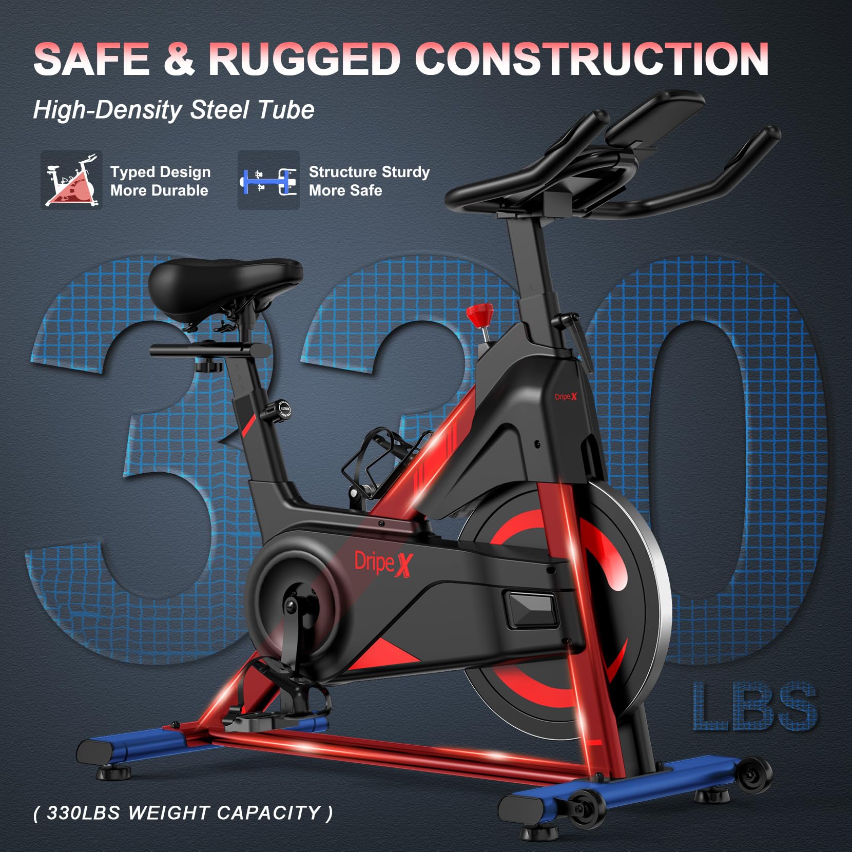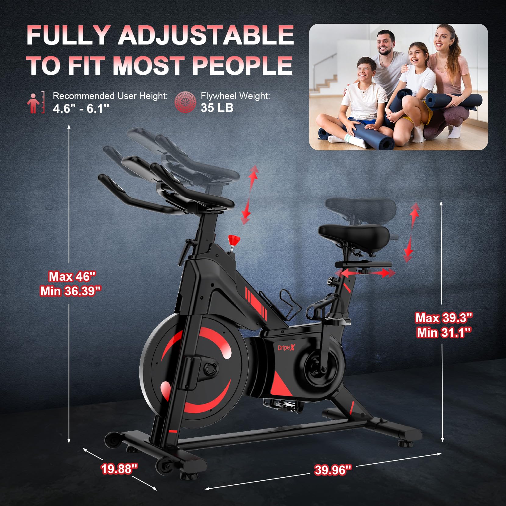 - 👍【UPGRADED DRIPEX EXERCISE BIKE】The latest upgraded industrial-grade heavy-duty steel, triangular stable structure, equipped with 35LBS flywheel, can bear 330LBS weight. Bike exercise is a versatile form of aerobic exercise that helps enhance cardiopulmonary function, lose weight, build muscles, and reduce anxiety. It is suitable for people of all ages and physical fitness levels. Ignore busy work/bad weather/cold winter and exercise at home anytime to keep your family healthy.
