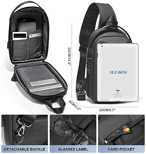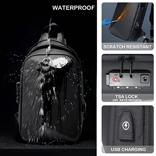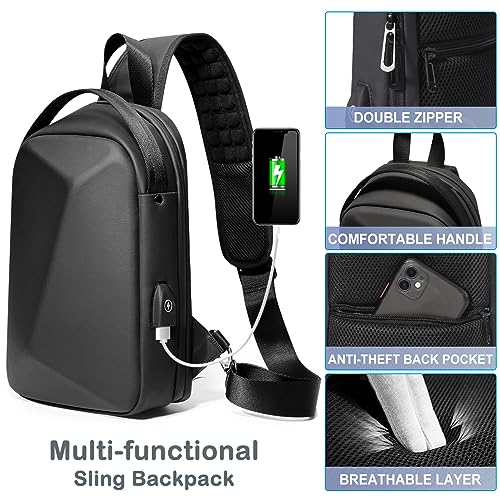 FENRUIEN Anti-Theft Crossbody Sling Backpack Bag for Men&Women Hard Shell with USB, Shoulder Pack Lock Waterproof 10.2 inch Single Strap for Travel Hiking Daily