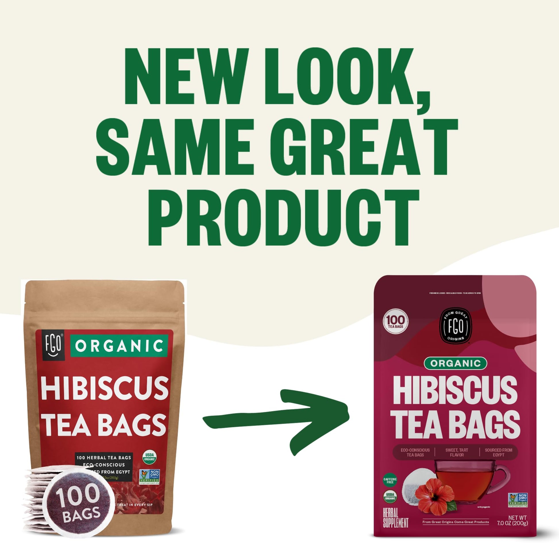 FGO Organic Hibiscus Tea, Eco-Conscious Tea Bags, 100 Count, Packaging May Vary (Pack of 1)Brand: FGO