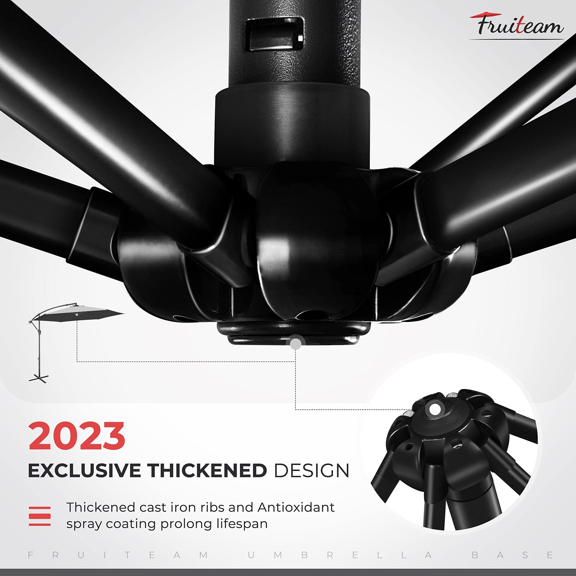- SOLID FRAME, SECURITY GUARANTEE - FRUITEAM garden umbrella frame is composed of a spray cast iron pole and 6 solid ribs, and the metal cross bar, which are heavy-duty and durable enough, to provide the better support of large canopy.(PLEASE USE AN EXTRA WEIGHT BASE FOR UMBRELLA'S STABILITY)