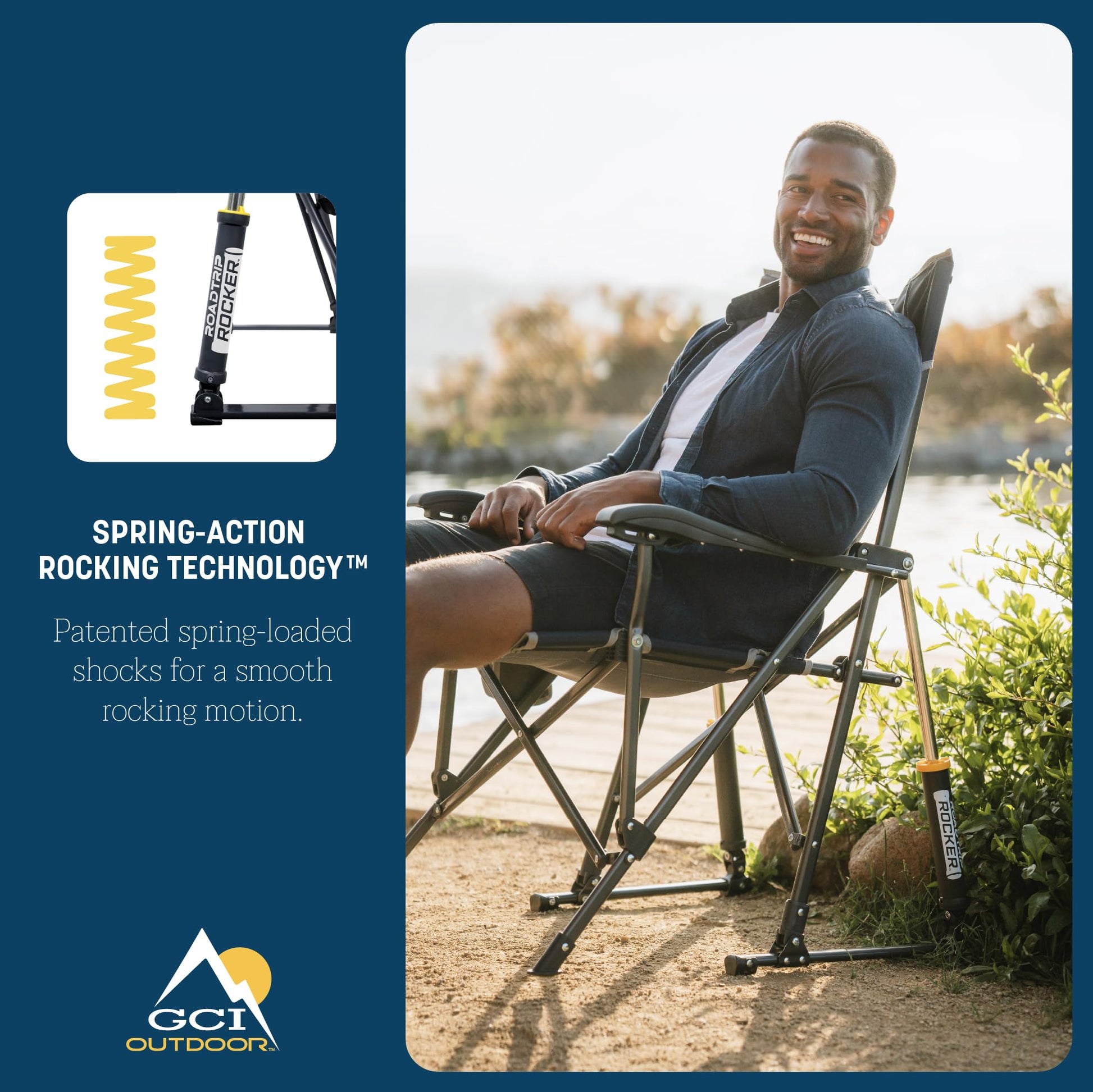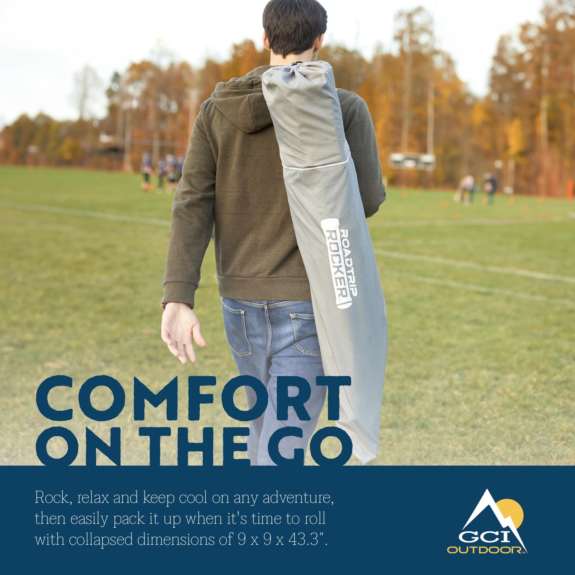 - OUTDOOR LIVING IT UP. The RoadTrip Rocker from GCI Outdoor combines comfort, innovation, and portability into the ultimate adult rocking chair. Rock and relax in comfort on any adventure with those you love, then just fold it up when it's time to travel.