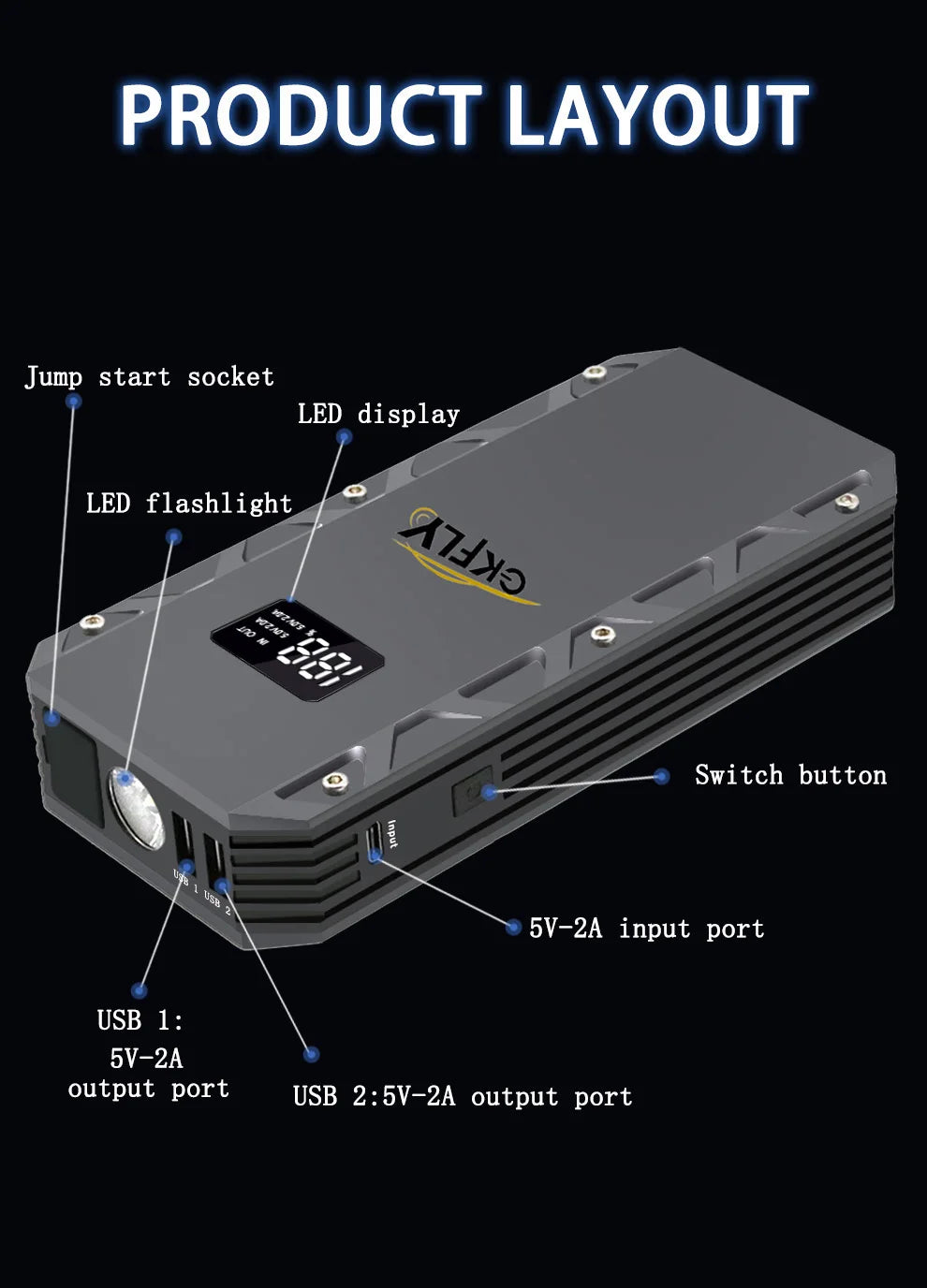 GKFLY Car Jump Starter Portable Power Bank 6000A/4000A/3000A Starting Device Car Booster Battery For Petorl Diesel CarSPECIFICATIONS