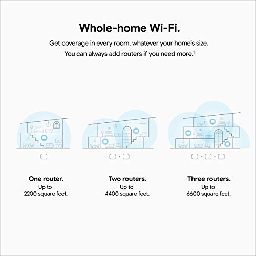 Details: Google Nest Wifi 1 Pack packaged with a Google Seal for Online Marketplace Google Nest Wifi is the easy to set up whole-home mesh Wi-Fi system. Nest Wifi routers work together to blanket your whole home in fast, reliable Wi-Fi and eliminate buffering in every room, on every device β with coverage up to 4400 square feet.[1] This is Wi-Fi the way it should be. [1] Home size, materials, and layout can affect how Wi-Fi signal travels. Larger homes or homes with thicker walls or long, narrow layouts may need extra Nest Wifi devices for full coverage. [2] This is based on only using connected devices at a maximum data rate of 1Mbps. Requires sufficient broadband internet connection and connected devices must be located within Wi-Fi coverage area. [3] Strength and speed of signal will depend on your internet provider.
