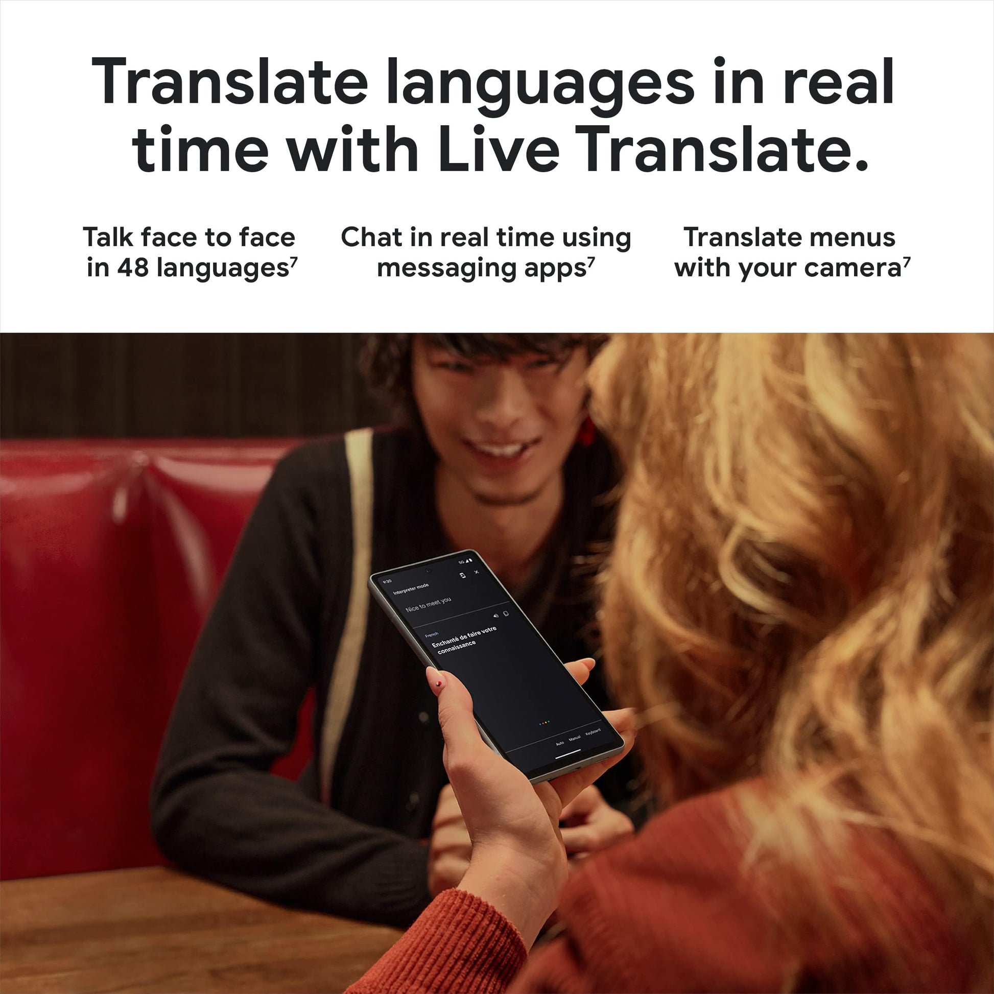 - With Live Translate, you can have conversations face to face in 48 languages, chat in real time with messaging apps, and translate menus with your camera[7]