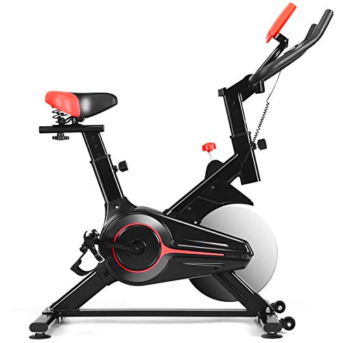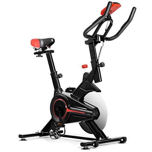 GYMAX Indoor Cycling Bike, Stationary Exercise Bike with LCD Monitor, Heart Pulse Sensor & Comfortable Seat Cushion for Home Workout Black+RedBrand: GYMAX
