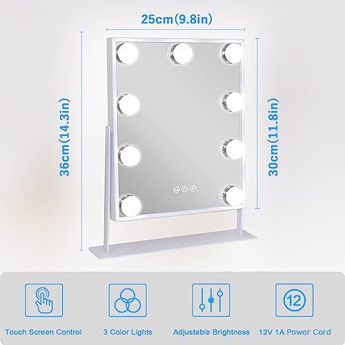 Hansong Vanity Mirror with Lights with 9 LED Bulbs Makeup Mirror with Lights 3 Color Lighting Modes Lighted Vanity Makeup Mirror 360 Degree Rotation White
