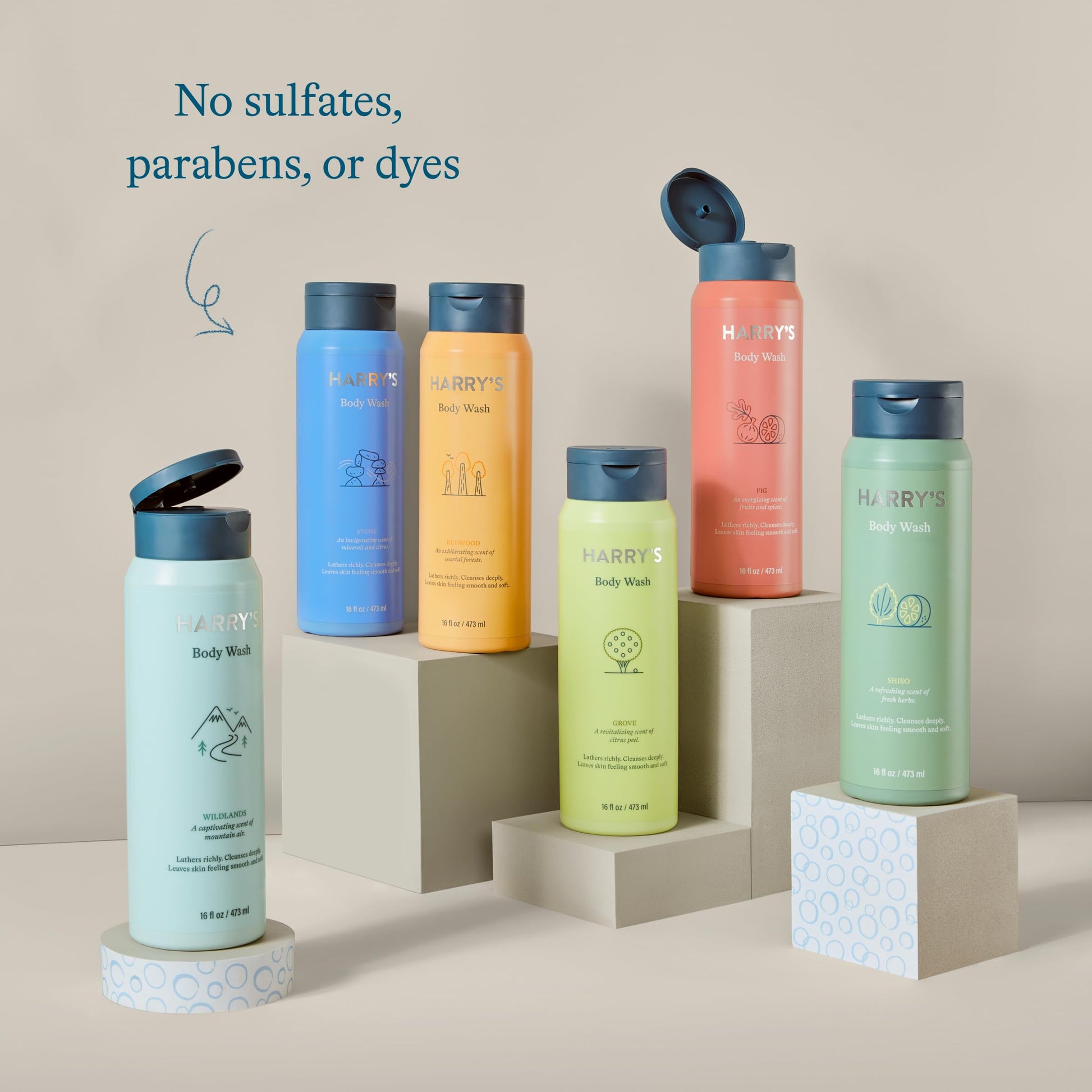 - HARRY'S MEN'S BODY WASH - Our body wash cleanses deeply without drying out. Some mens body wash use sulfates to create lather, leaving your skin dry and sensitive. To remedy that, we chose gentle ingredients for our shower gel that are made without sulfates, parabens, or dyes.