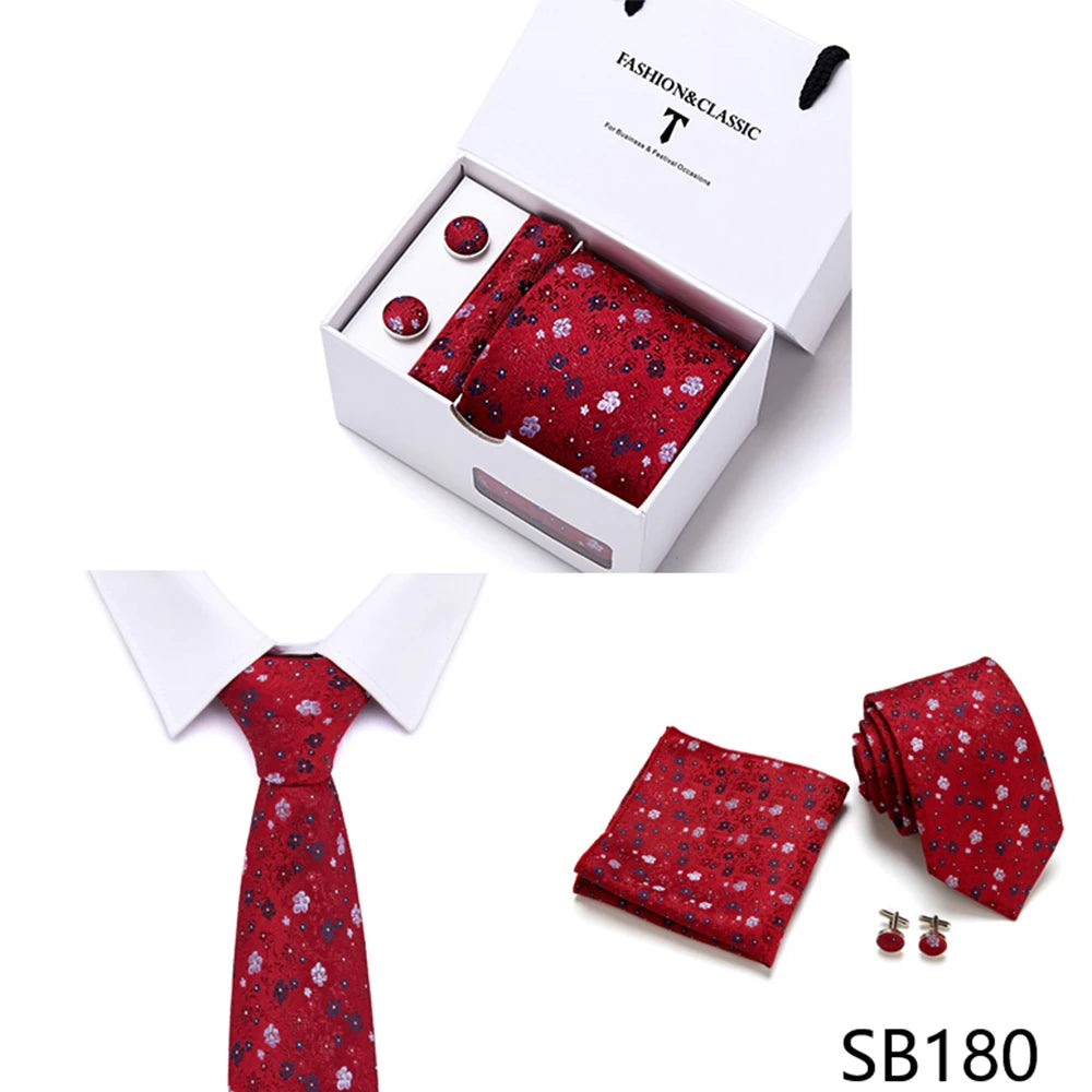 High Quality 7.5 cm Stripe Blue Tie Pocket Square Cufflinks Set For Men Gift Box Wedding Gravatas Fit Workplace