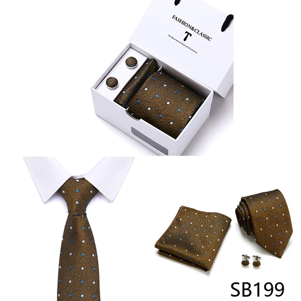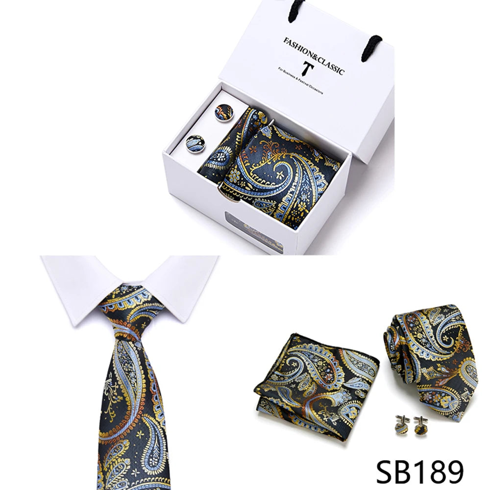 Best Selling High Quality 7.5 cm Stripe Blue Tie Pocket Square Cufflinks Set For Men Gift Box Wedding Gravatas Fit Workplace
