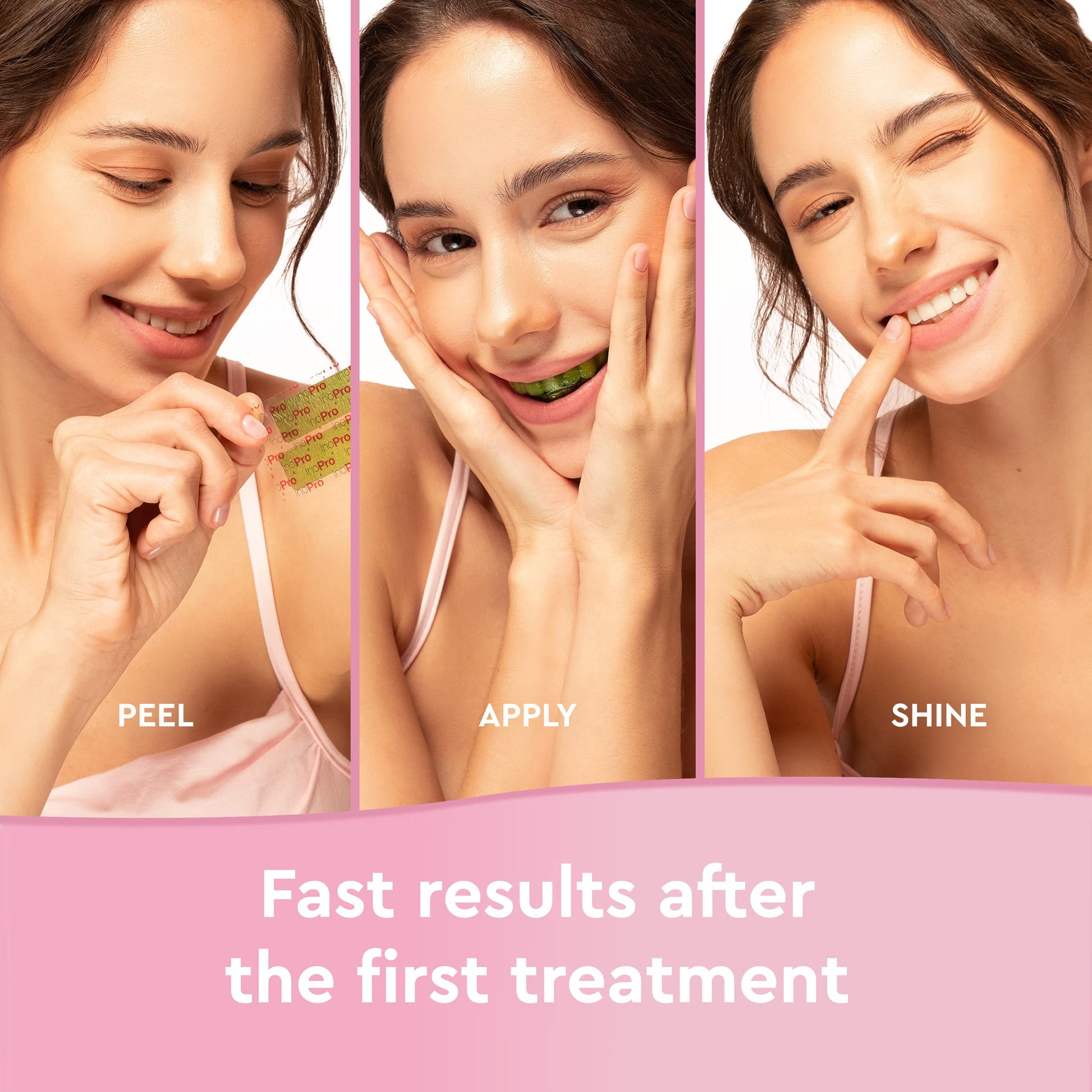 Details: Arbutin Whitening Strips ensure both whiter teeth and improved oral hygiene with a formula that whitens teeth with safe bleaching ingredients. This formula eliminates plaque, tartar and harmful bacteria from the surface of teeth, thus resulting in healthier, cleaner teeth. What’s more, it also safely removes discoloration from enamel, as well as dental crowns. These strips work in much the same way as a tape, as they firmly grab on to your teeth. We ensure that the right amount of bleach is always used, as good dental hygiene is of huge importance for your general wellbeing. Your teeth and gums should be healthy when you do the treatment. POST-TREATMENT: Once you’ve undergone this treatment, it’s important that you take good care of your teeth, as good oral hygiene will ensure your teeth stay whiter for longer. What’s more, you can repeat this treatment from time to time, especially if you consume tobacco, coffee or red wine. IMPORTANT * Keep out of reach of young children. * Do not eat or drink for 30 minutes after use. * Do not use after expiration date. You'll find expiration date on the box. * Stop use if you notice irritation or experience any sensitivity. * Do not swallow plastic strip.
