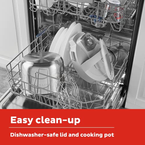 - QUICK, EASY CLEAN UP: Finger-print resistant, stainless-steel sides and dishwasher-safe lid, inner pot, and accessories.