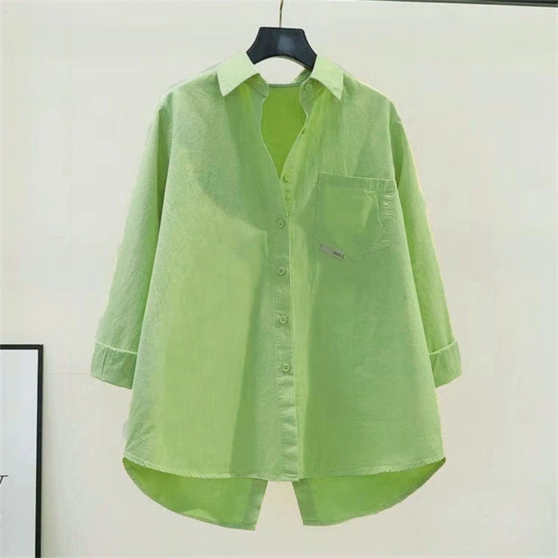 Irregular Office Lady Casual Elegant All-Match Shirt Loose Shirts And Blouses Spring Summer New Trend Solid Button Pocket Shirt