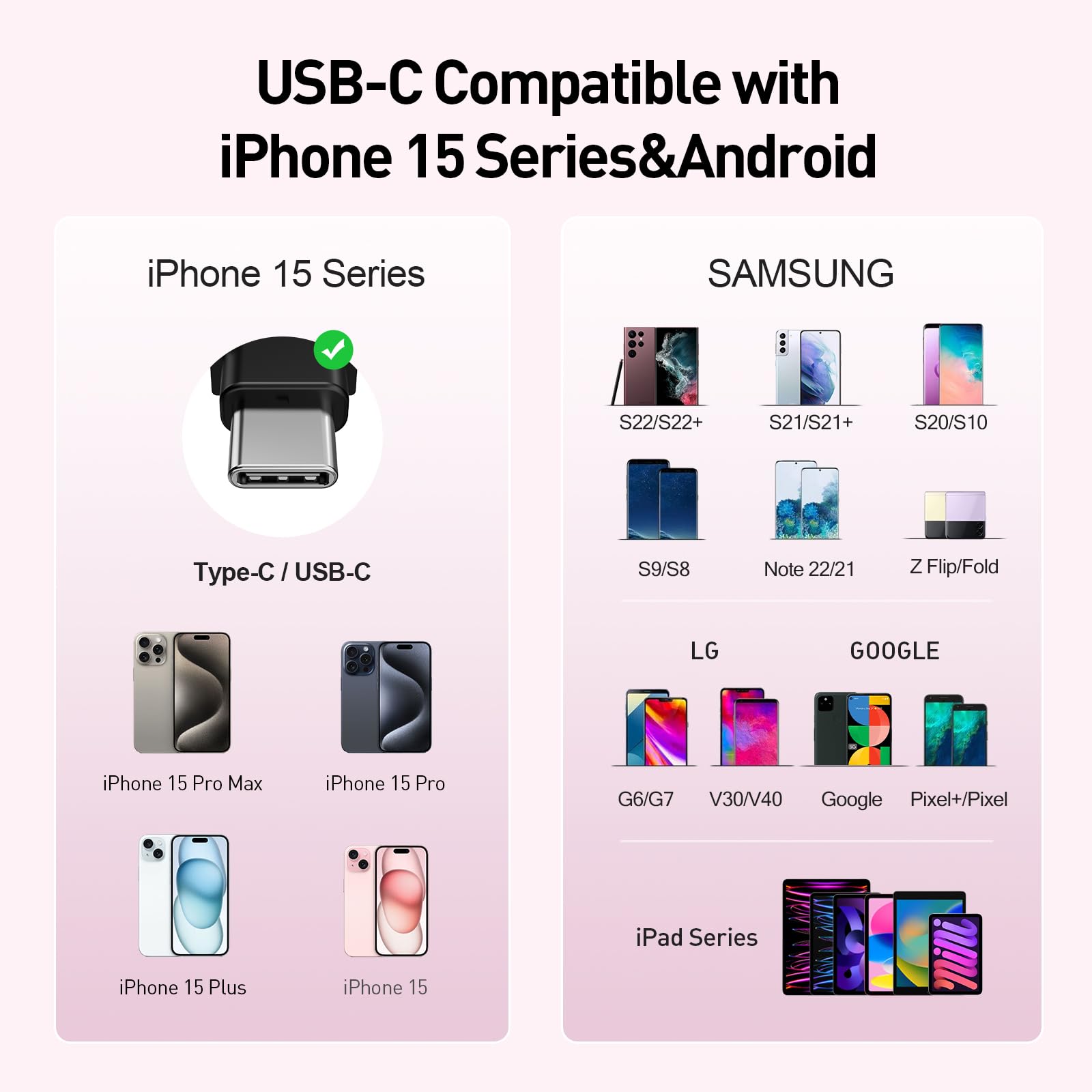 - Wide Compatibility: With built-in USB-C port is purposefully designed for iPhone 15 series and Sumsang S24, S23 ultra series, Galaxy, Pixel, LG,Huawei Oneplus and Other USB C Android Phones etc, fast charging that enhances your charging experience.