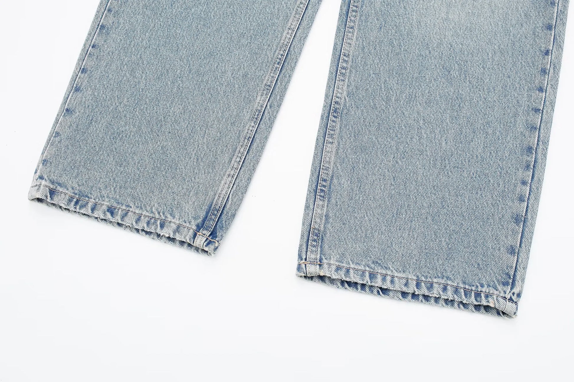 Jeans For Women 2024 Denim Solid Loose Zipper Fly Female Hole Trouser Pockets Wild Basic Commute Woman Wide Leg Long PantSPECIFICATIONS